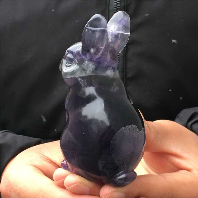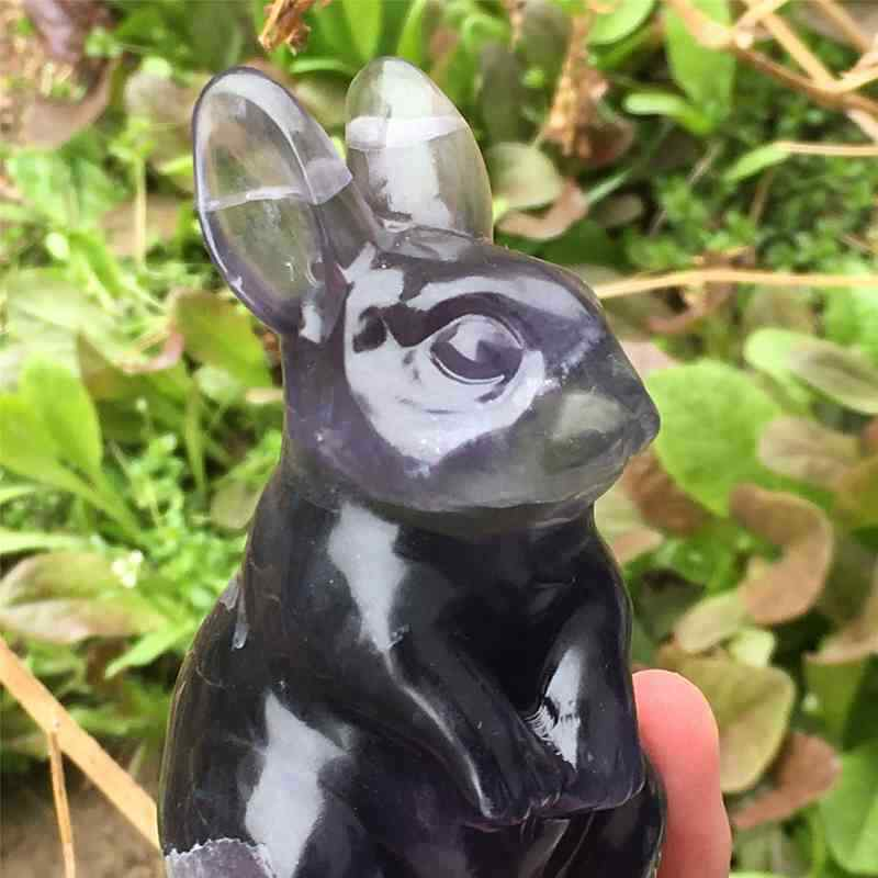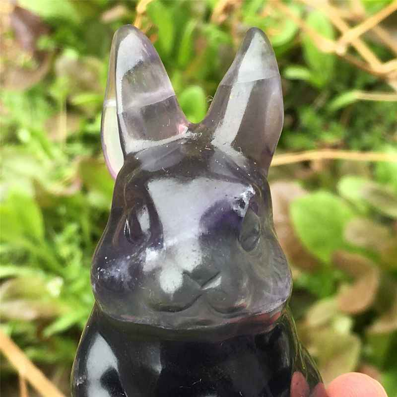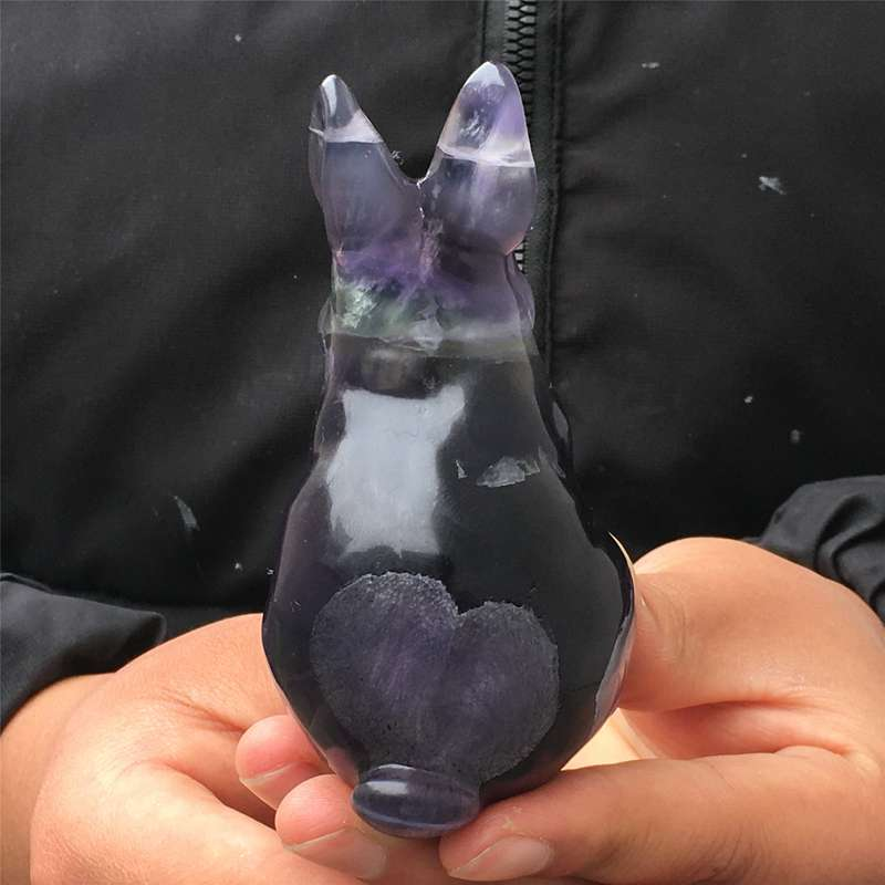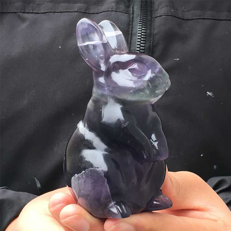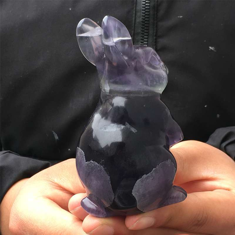 0.34kg Natural fluorite rabbit carved Quartz Crystal skull Healing