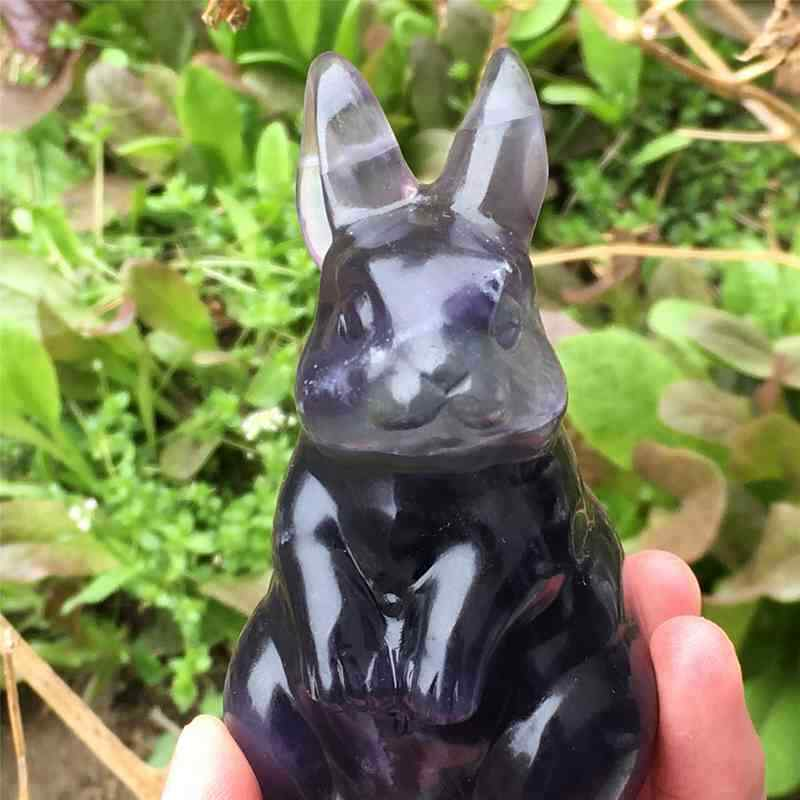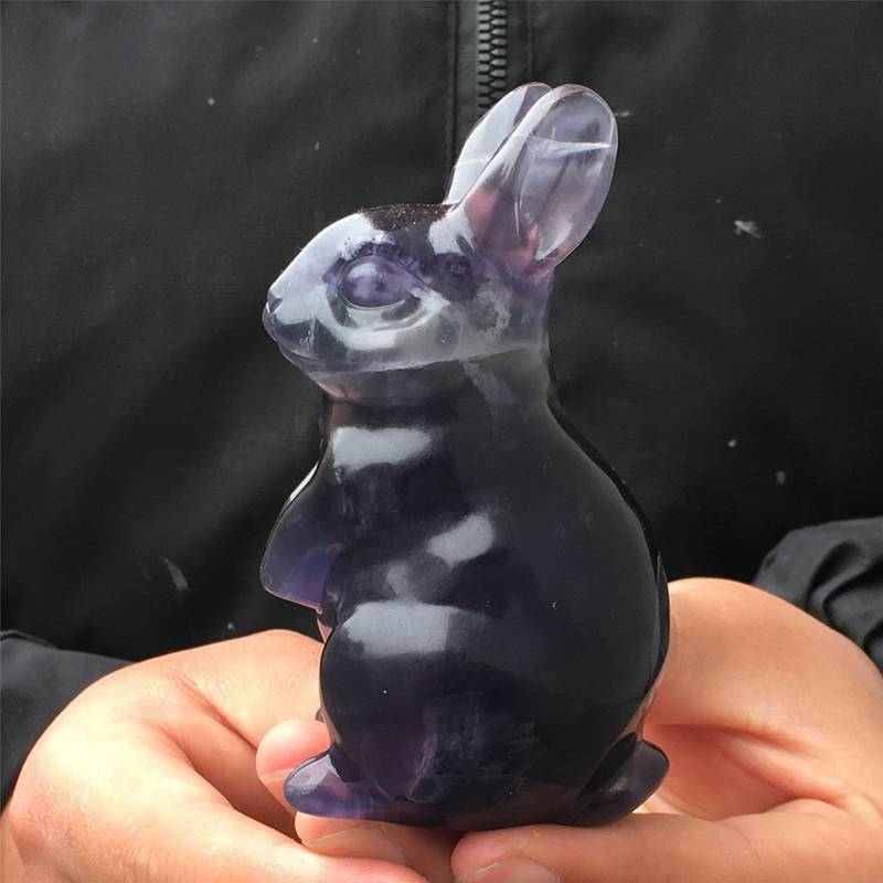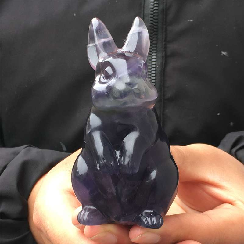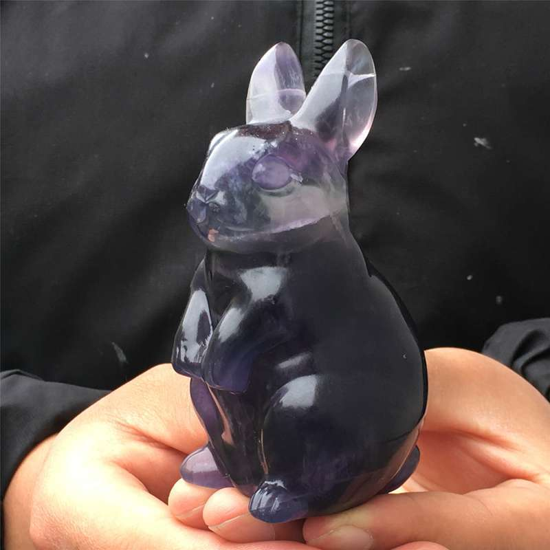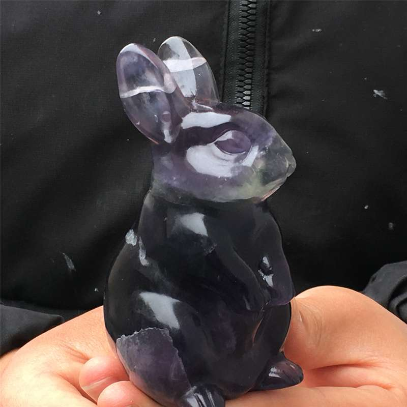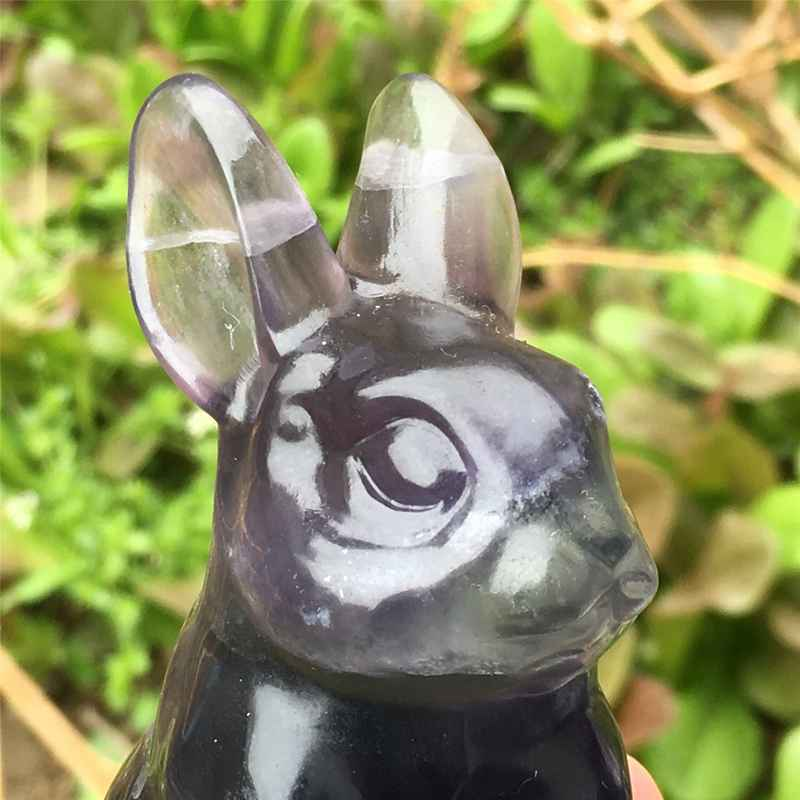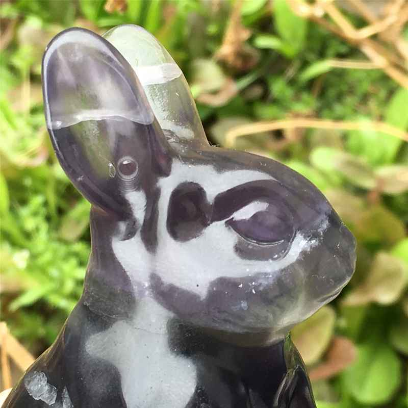 0.34kg Natural fluorite rabbit carved Quartz Crystal skull Healing