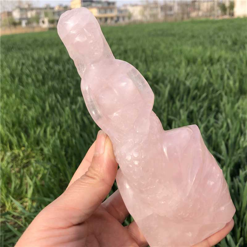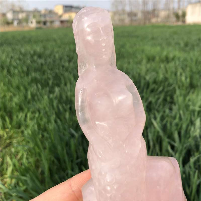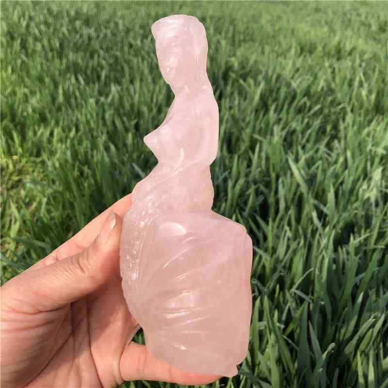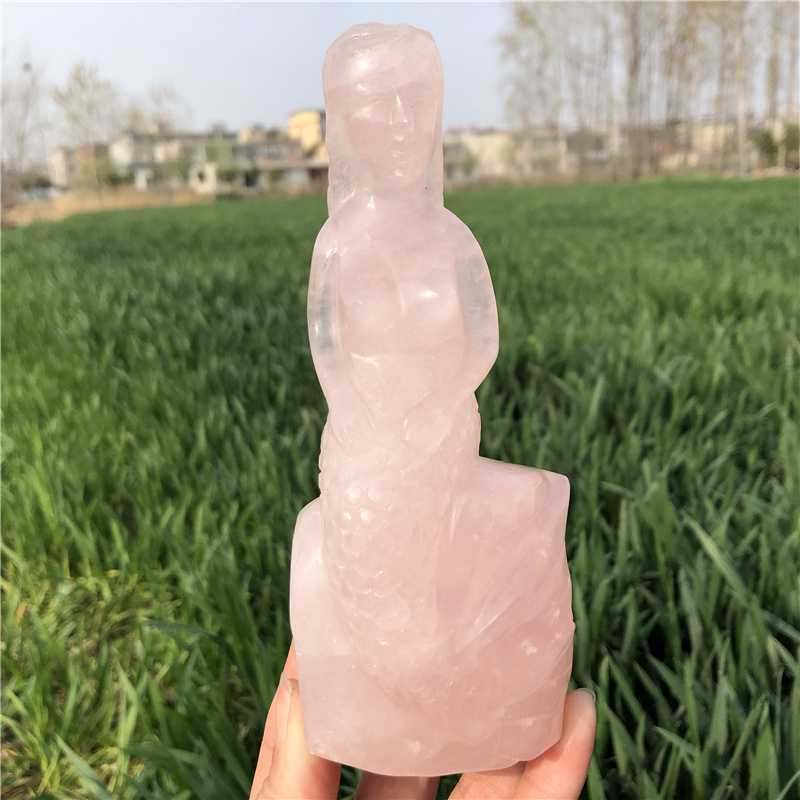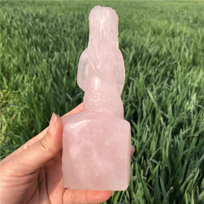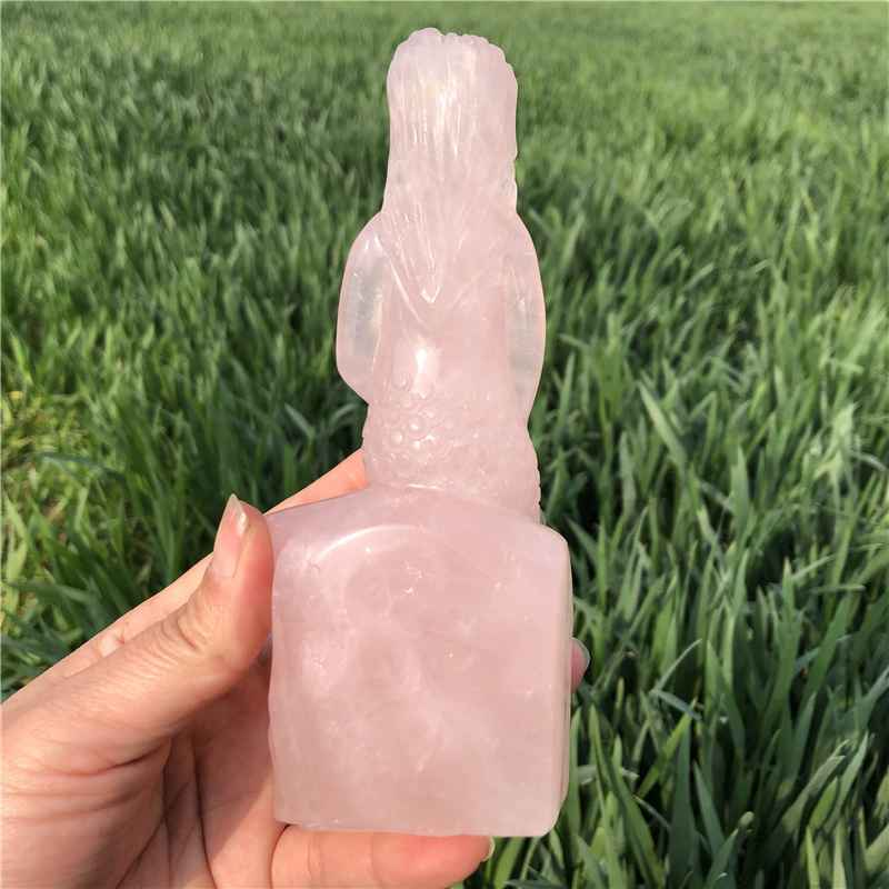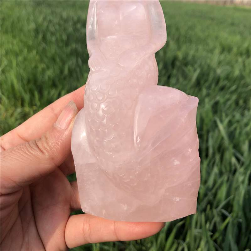 0.51kg Natural rose quartz mermaid carved Quartz Crystal skull Healing