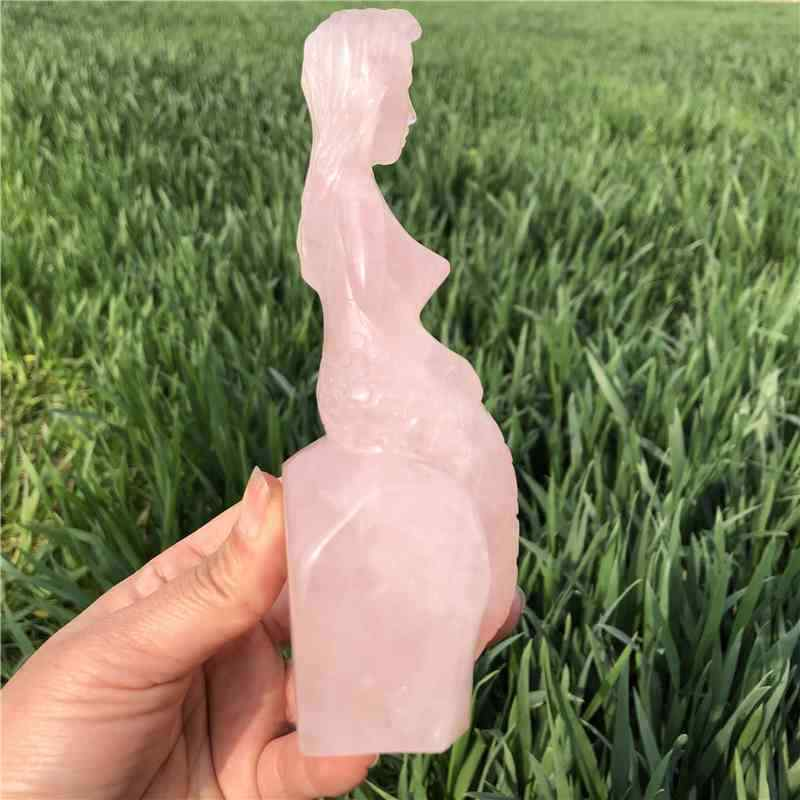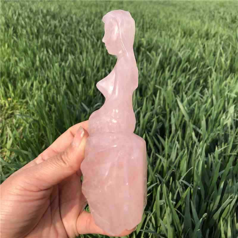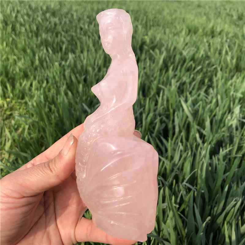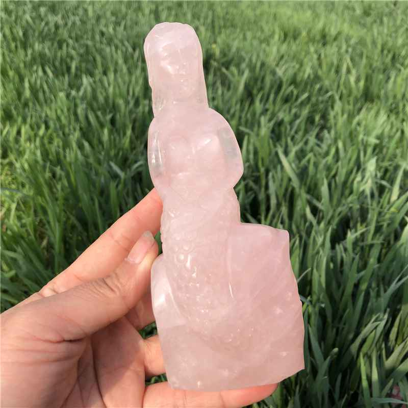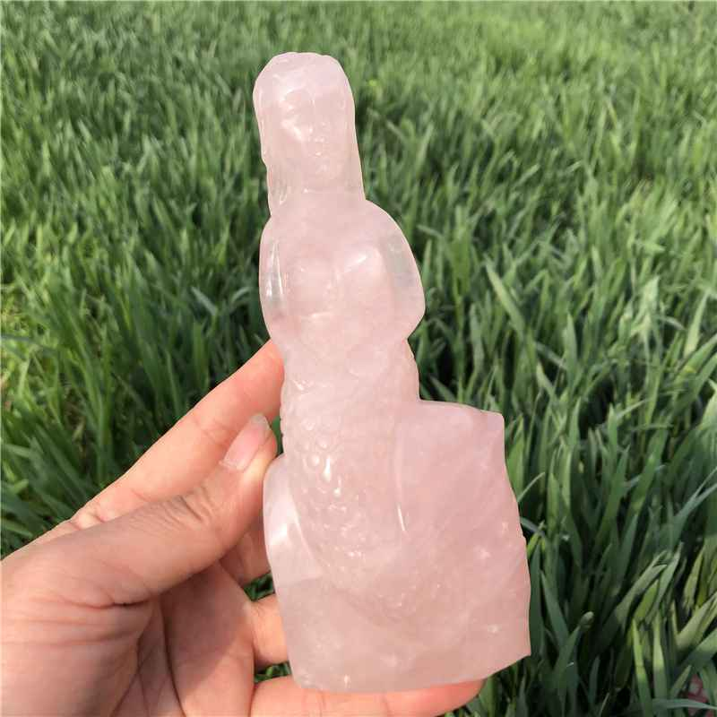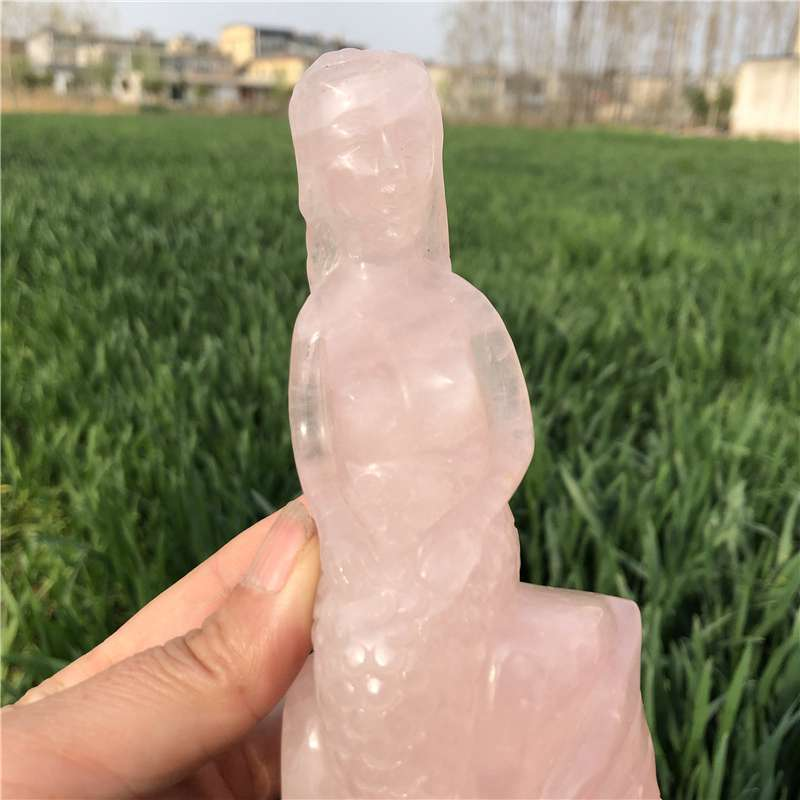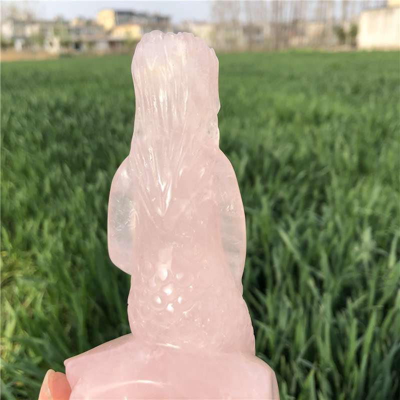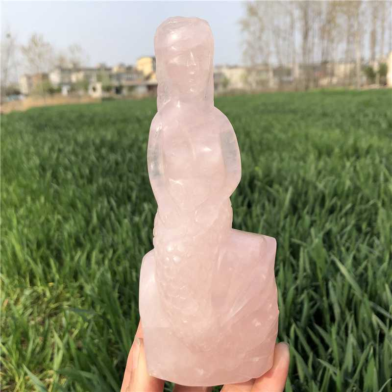 0.51kg Natural rose quartz mermaid carved Quartz Crystal skull Healing