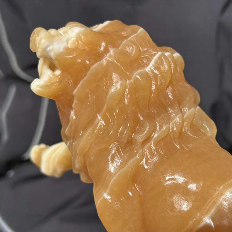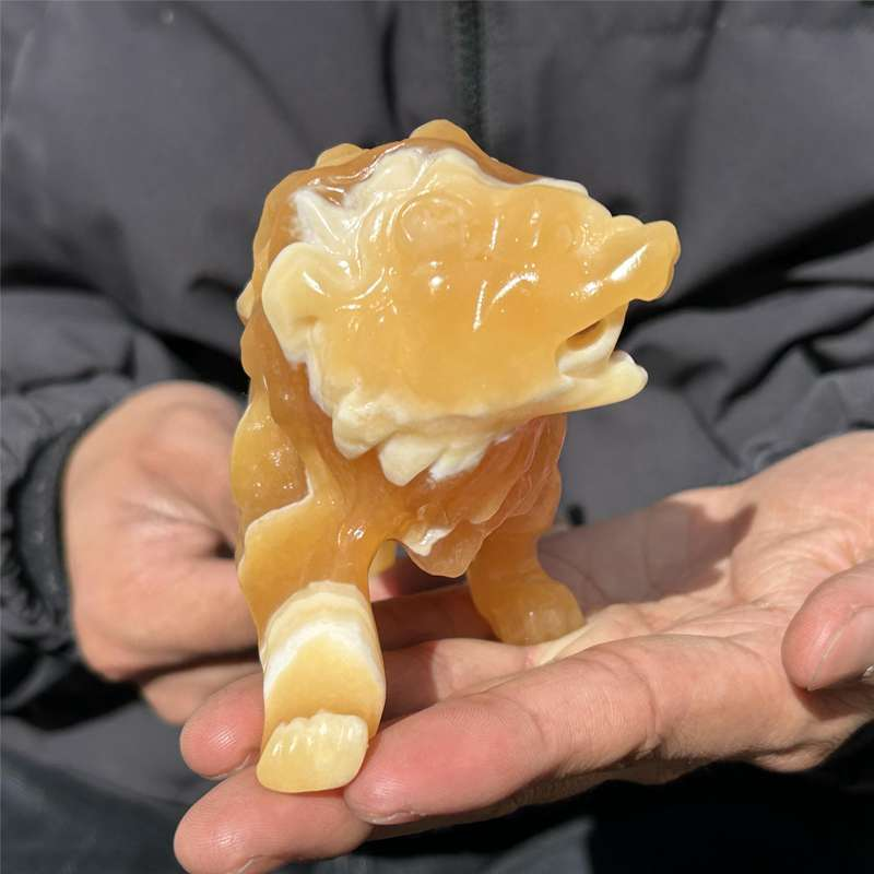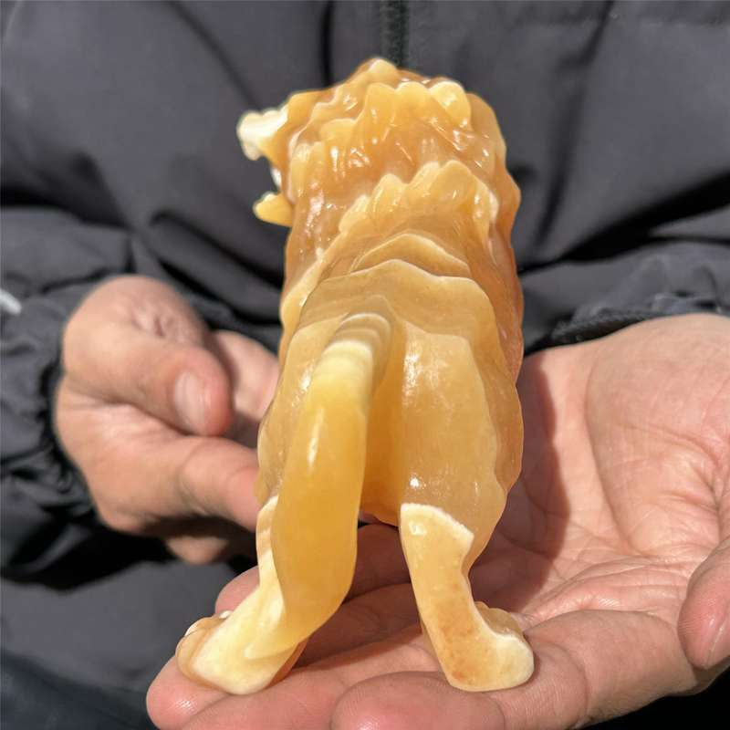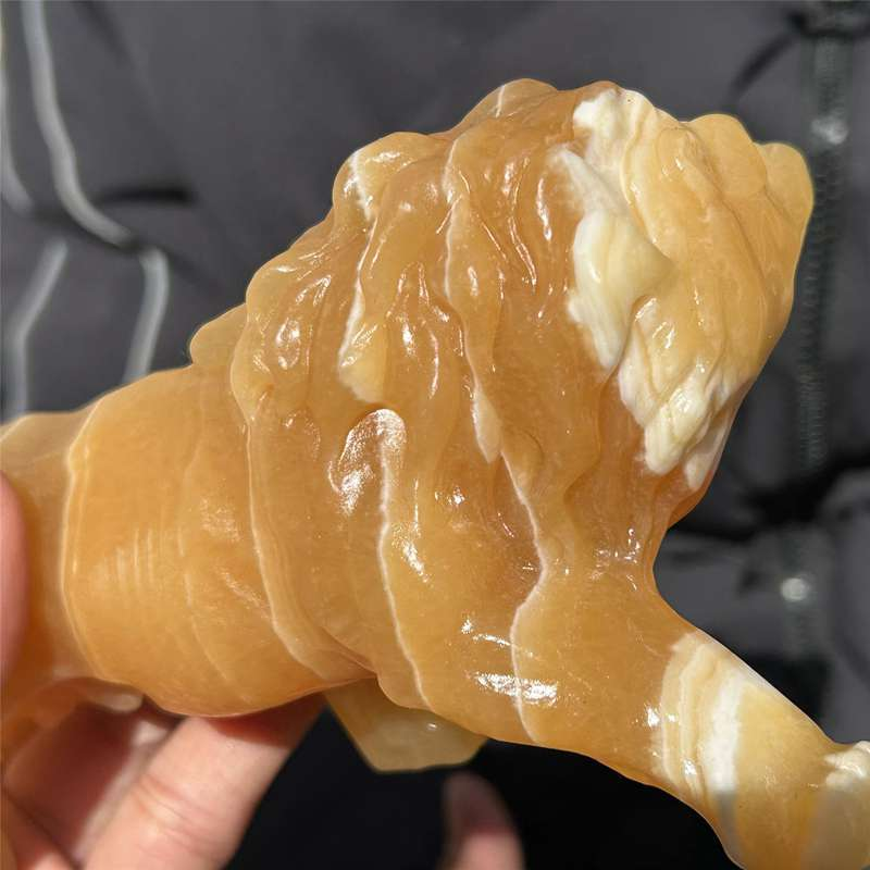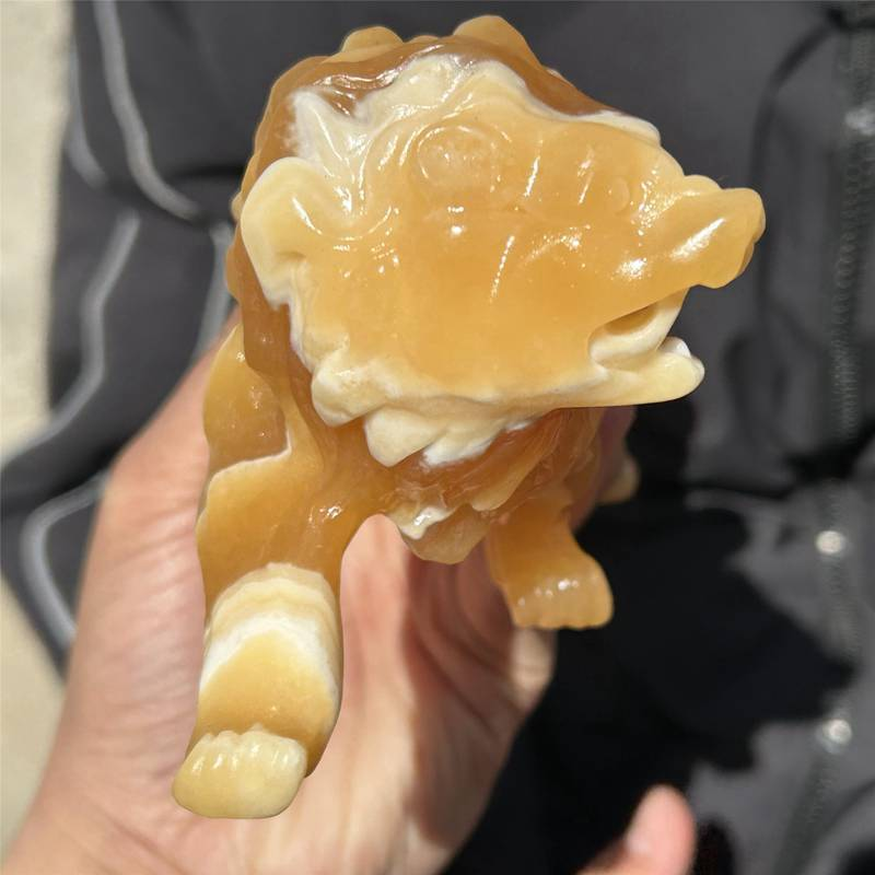 0.56kg Natural yellow calcite lion skull carved Quartz Crystal skull Healing