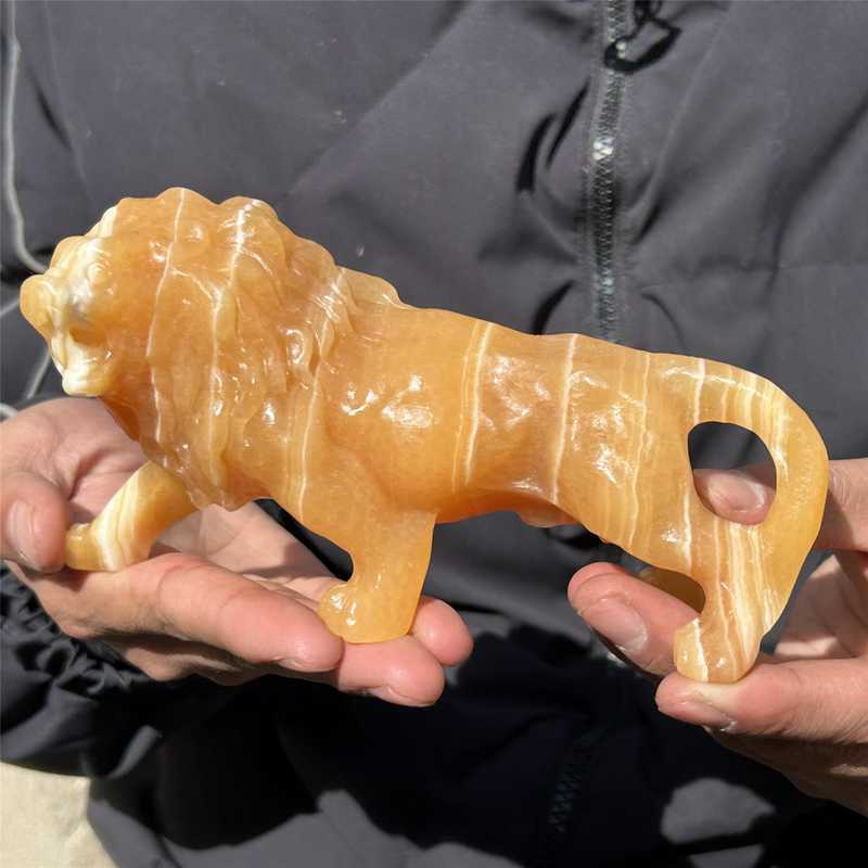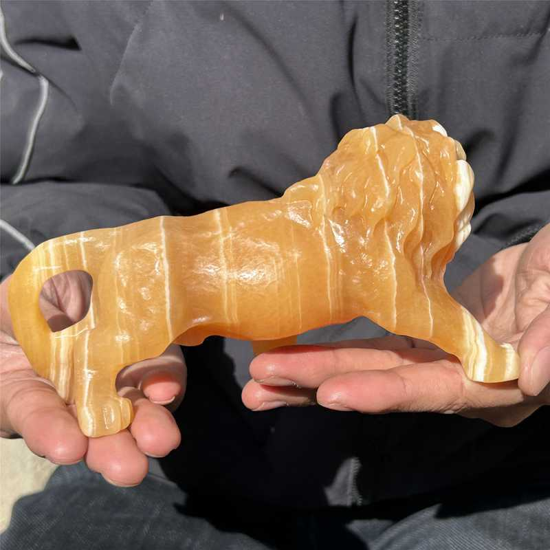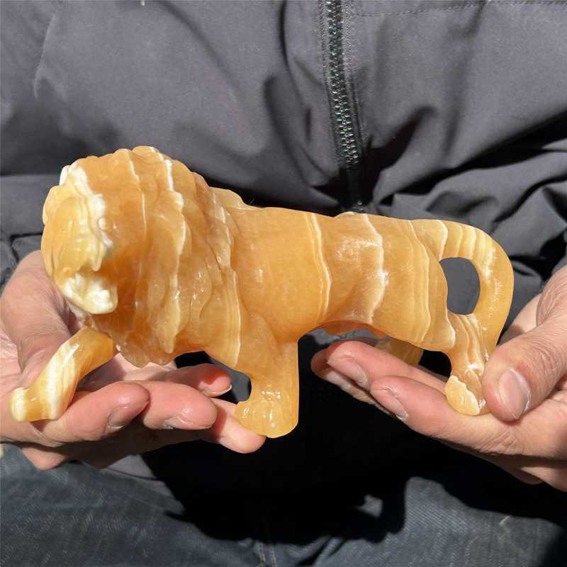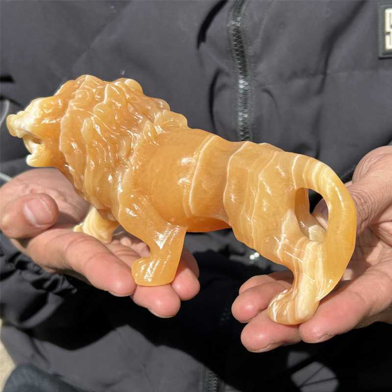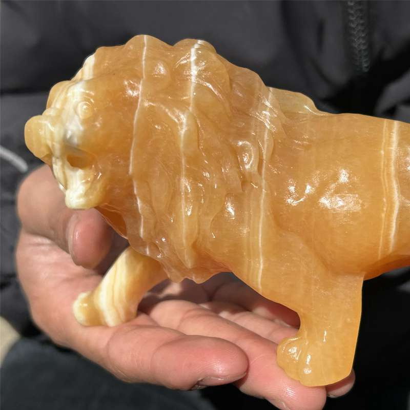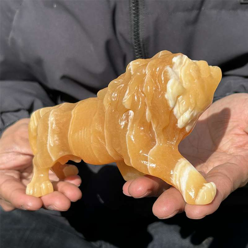0.56kg Natural yellow calcite lion skull carved Quartz Crystal skull Healing