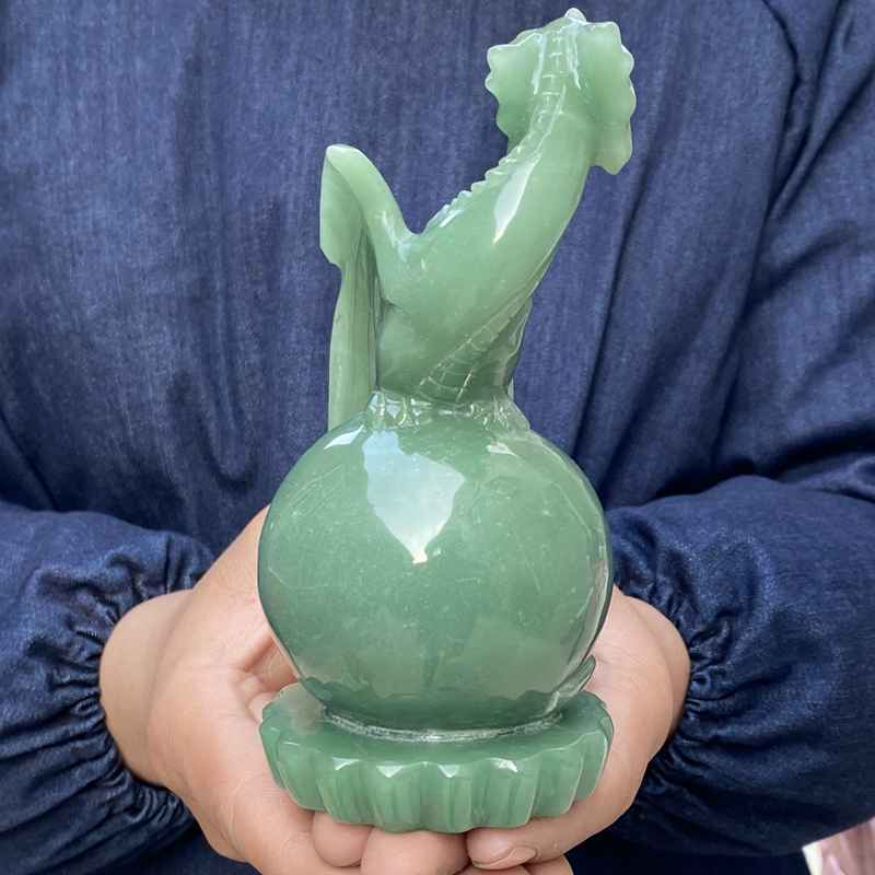 0.83kg Natural aventurine dragon skull carved Quartz Crystal skull Healing