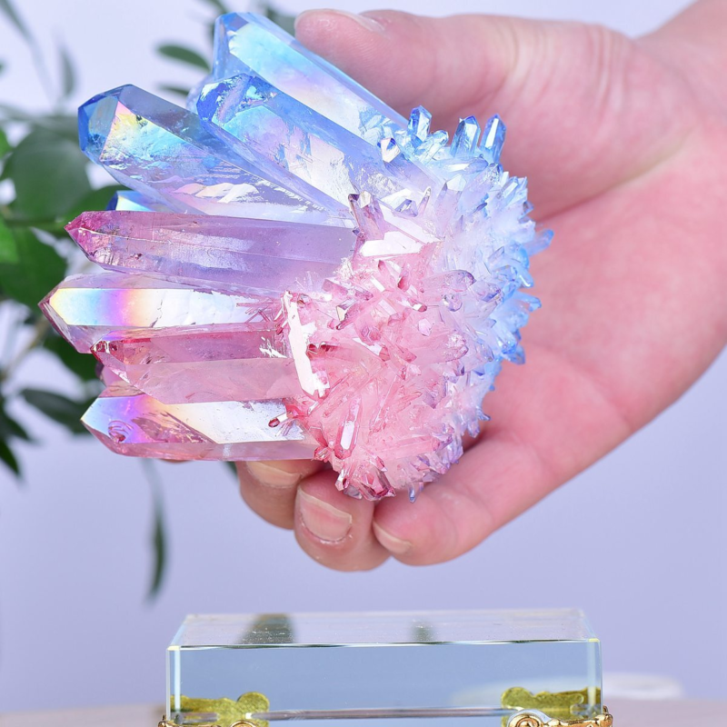 1.17LB Electroplated Color Crystal Cluster Crystal Mineral Reiki Healing