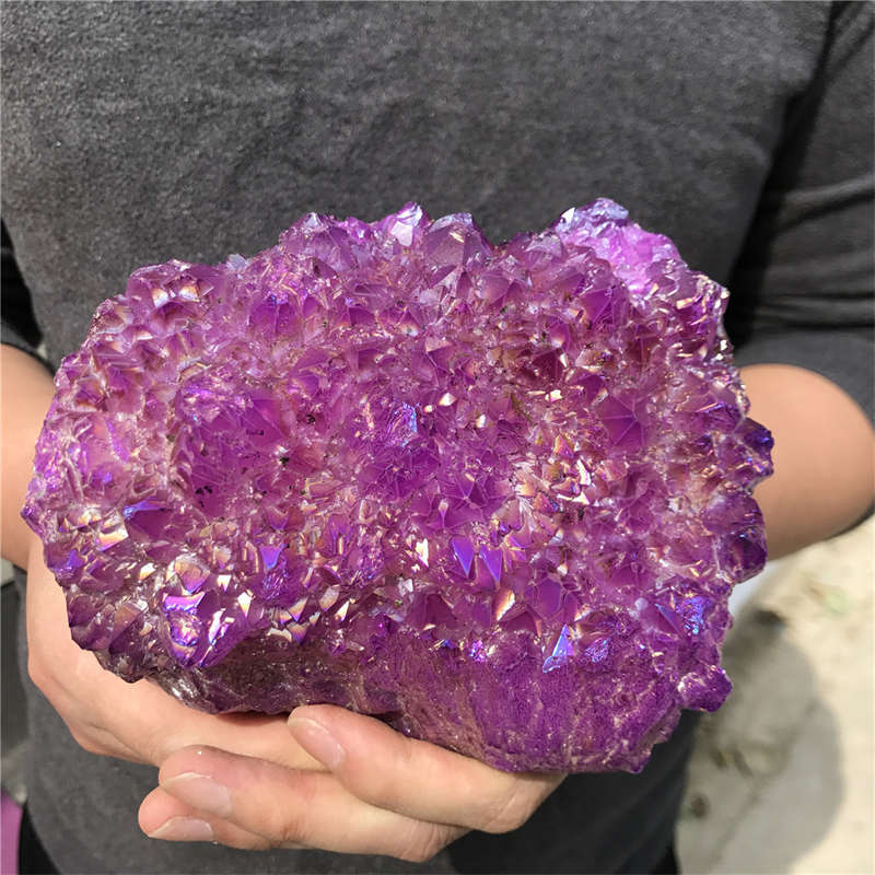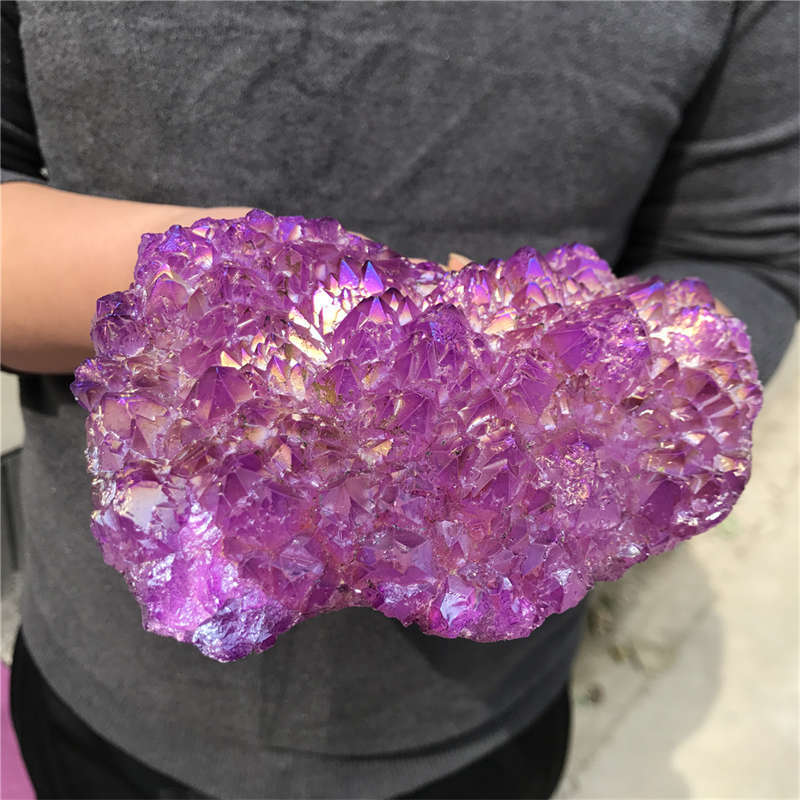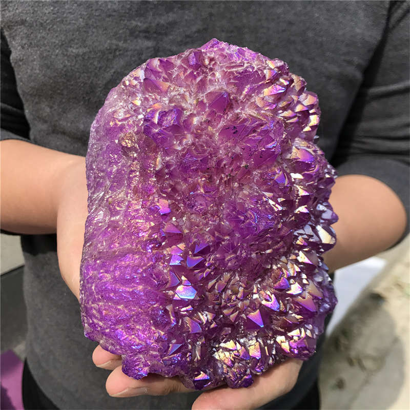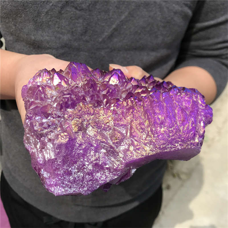 1.18kg Electroplate Rainbow cluster quartz crystal mineral specimen reiki healin