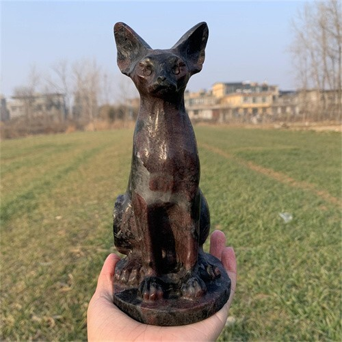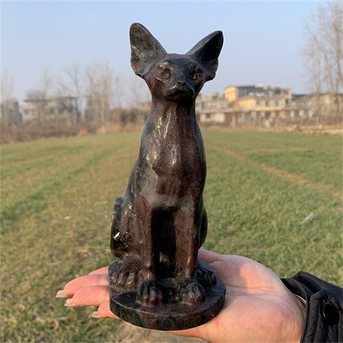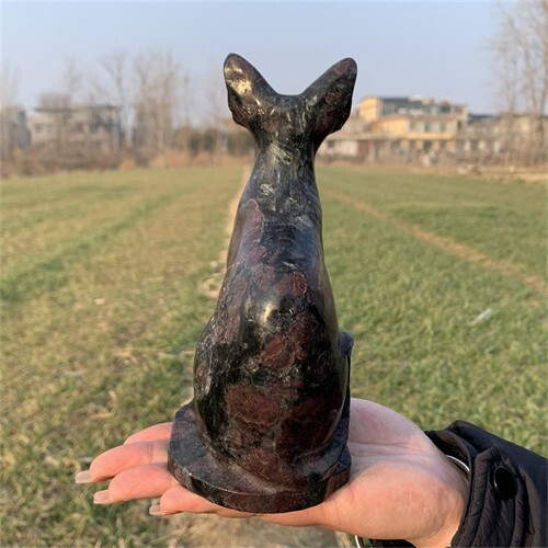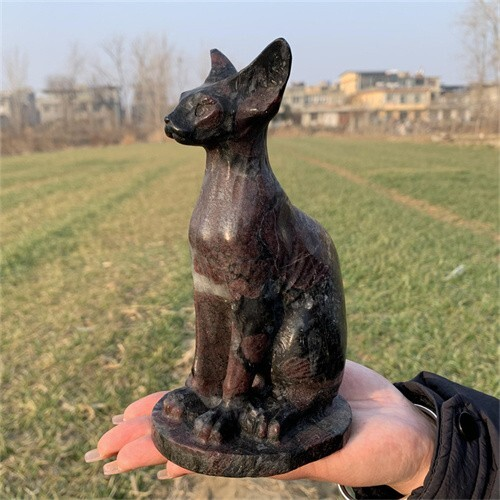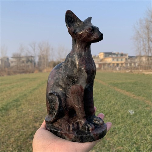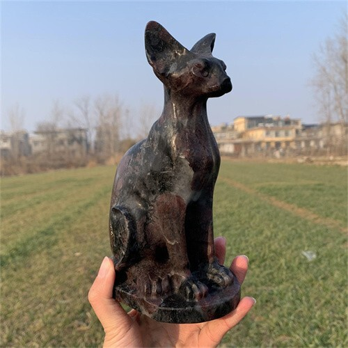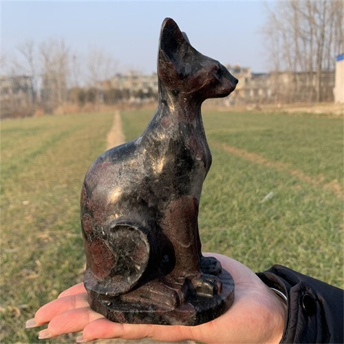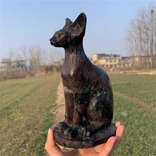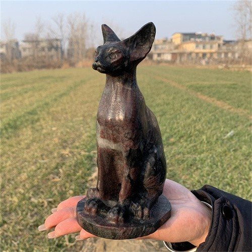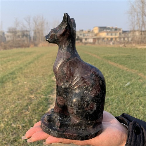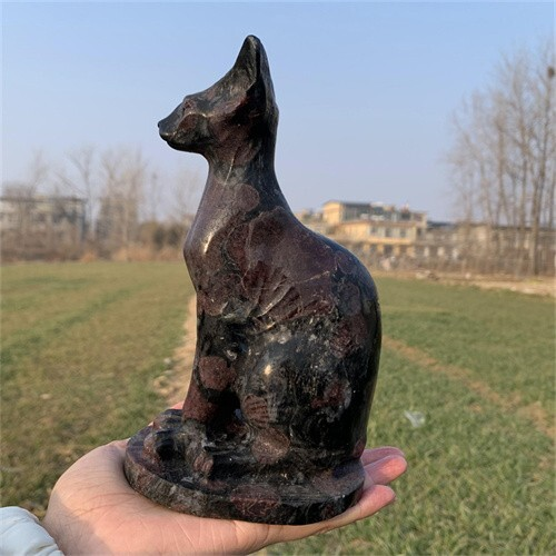 1.46kg Natural Carved Garnet Cat Figurines Reiki Quartz Crystal Skull Decor