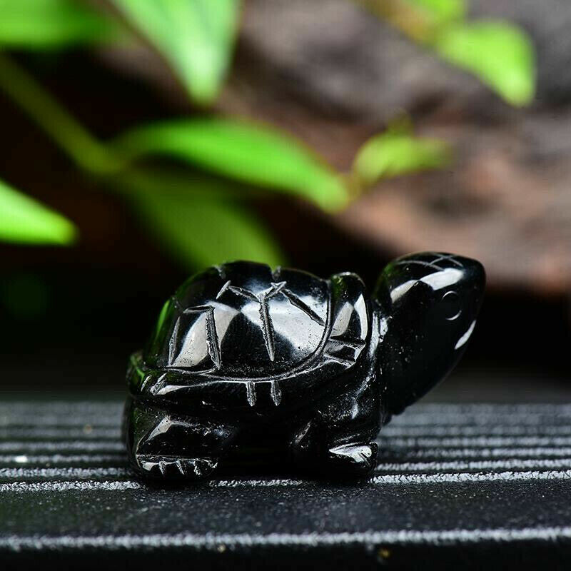 1.5" Top Natural obsidian Quartz hand carved Crystal tortoise reiki healing .1pc
