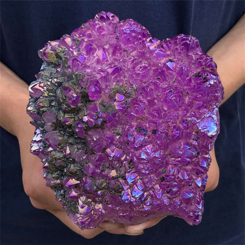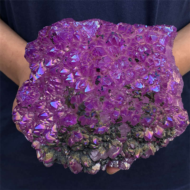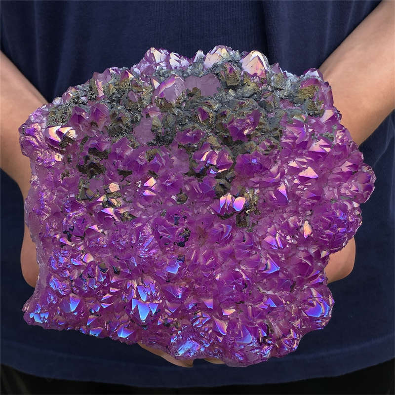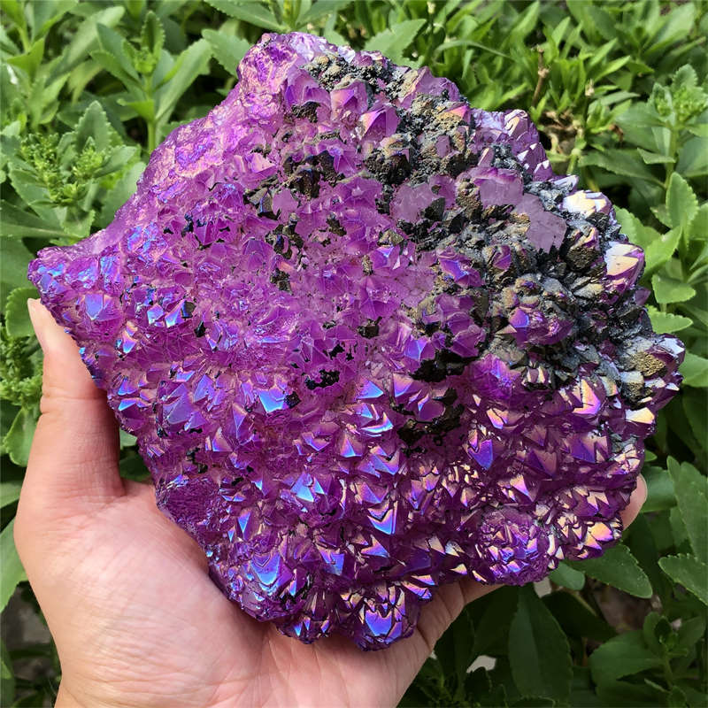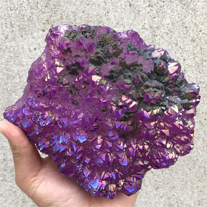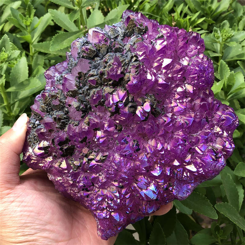 1.55kg Electroplate Rainbow cluster quartz crystal mineral specimen reiki healin