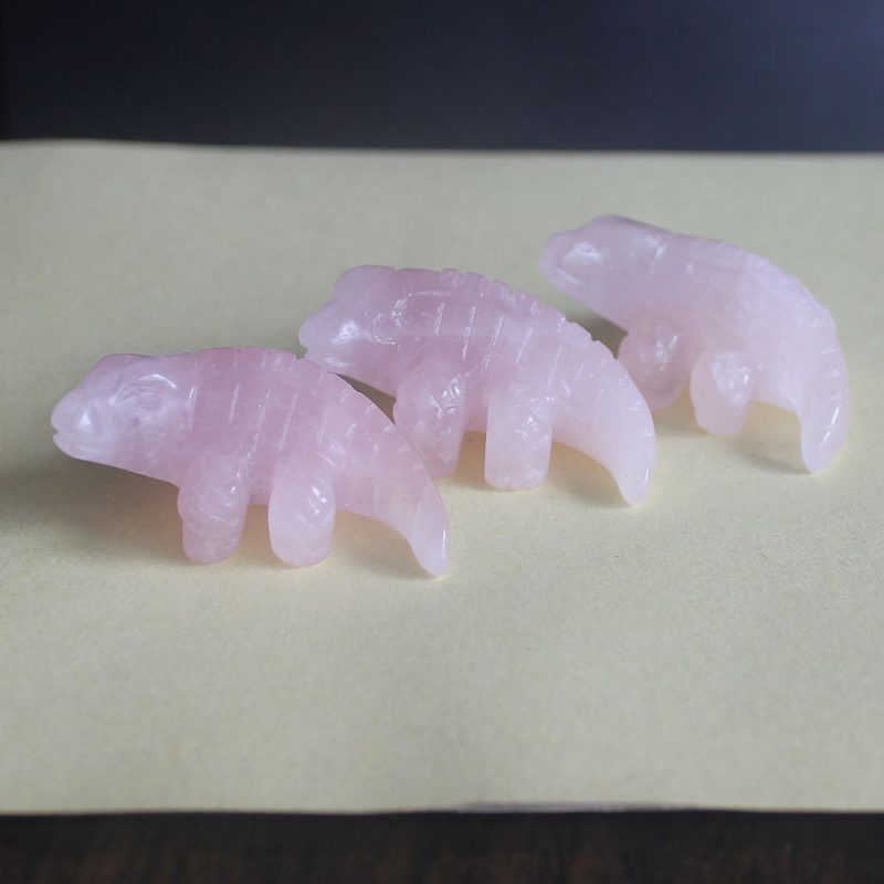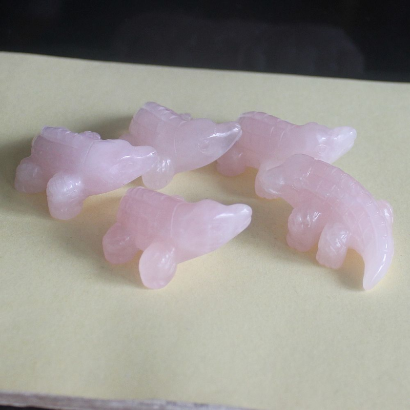 1.6'' Carved crystal rose quartz crocodilian figurine animal carving decor