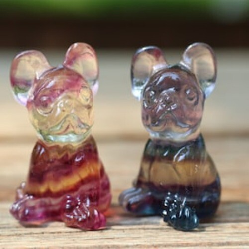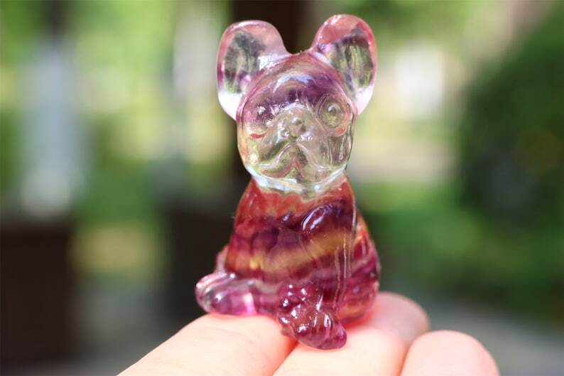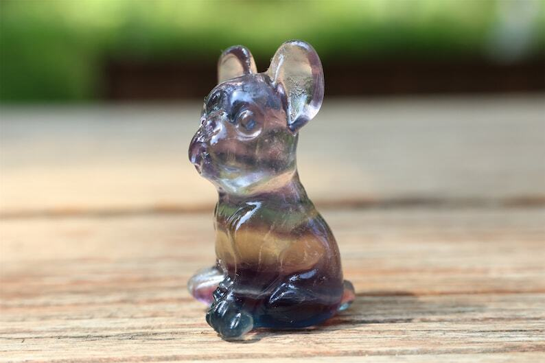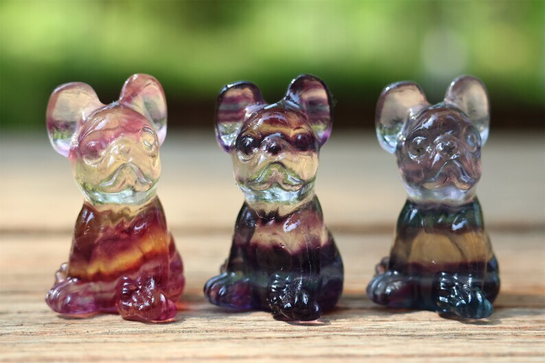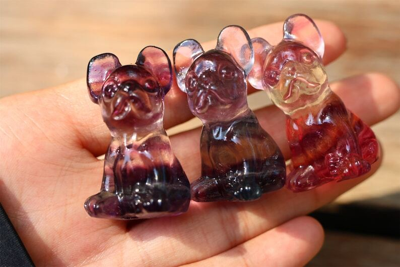 1.6" Natural Carved Fluorite dog Reiki Crystal Skull Crystal Heal Decor Gift 1PC