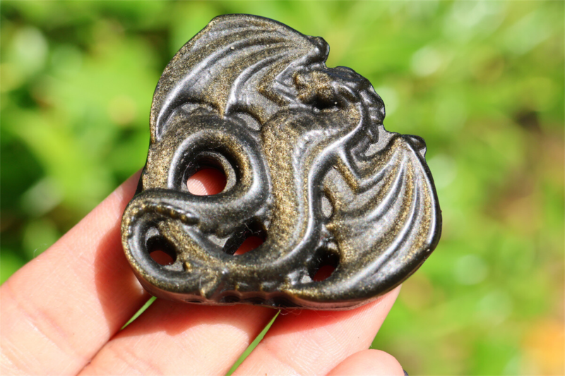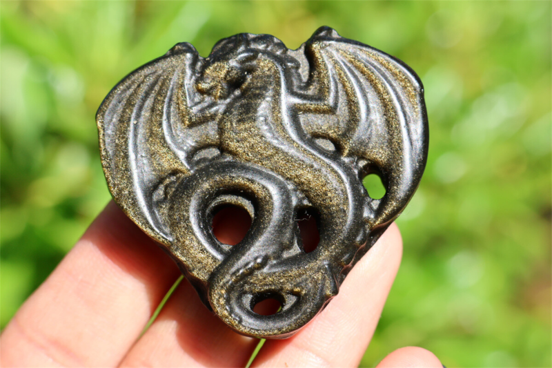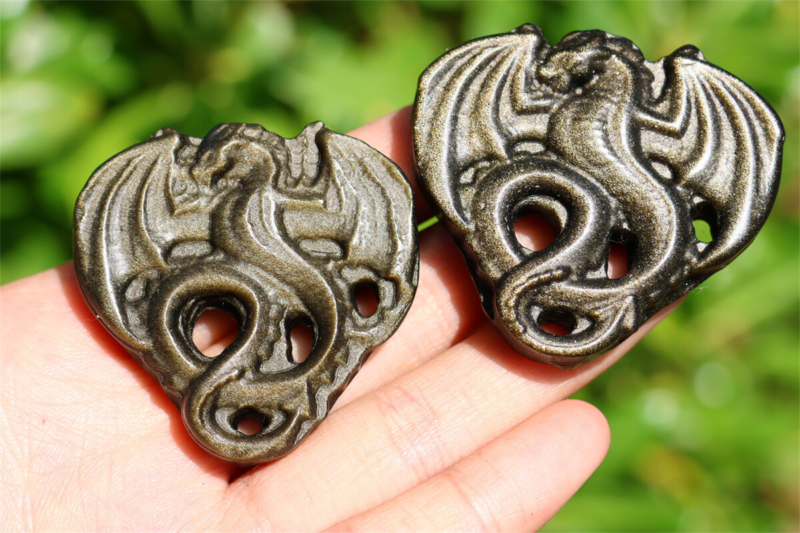 1.9" Hand Carved Natural Gold obsidian dragon Reiki Crystal Skull decor 1PC