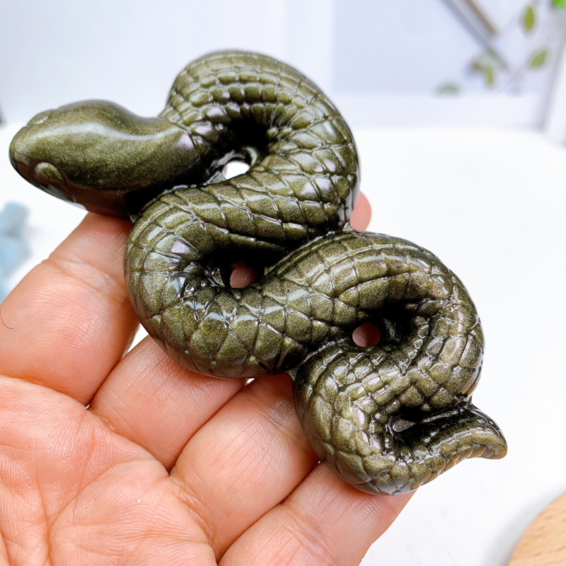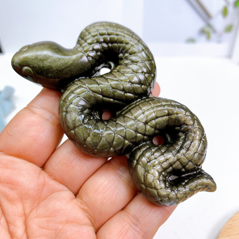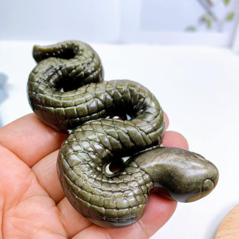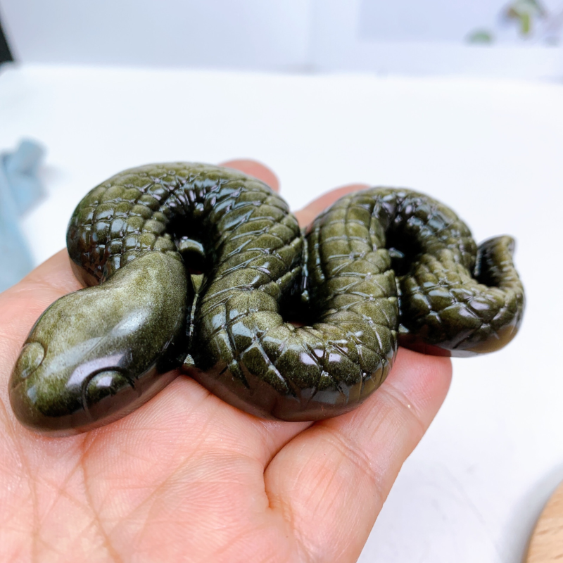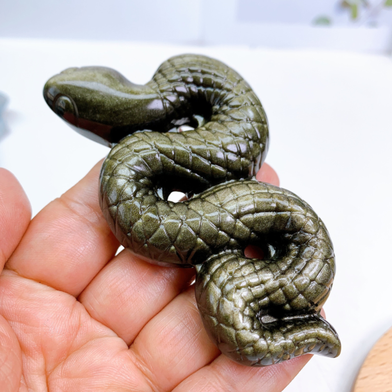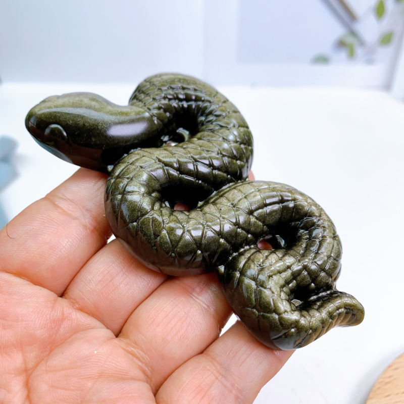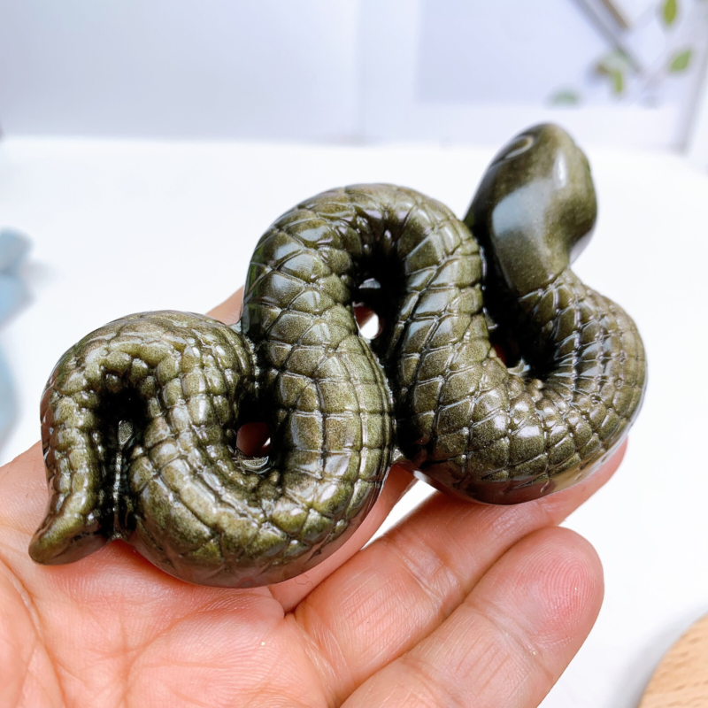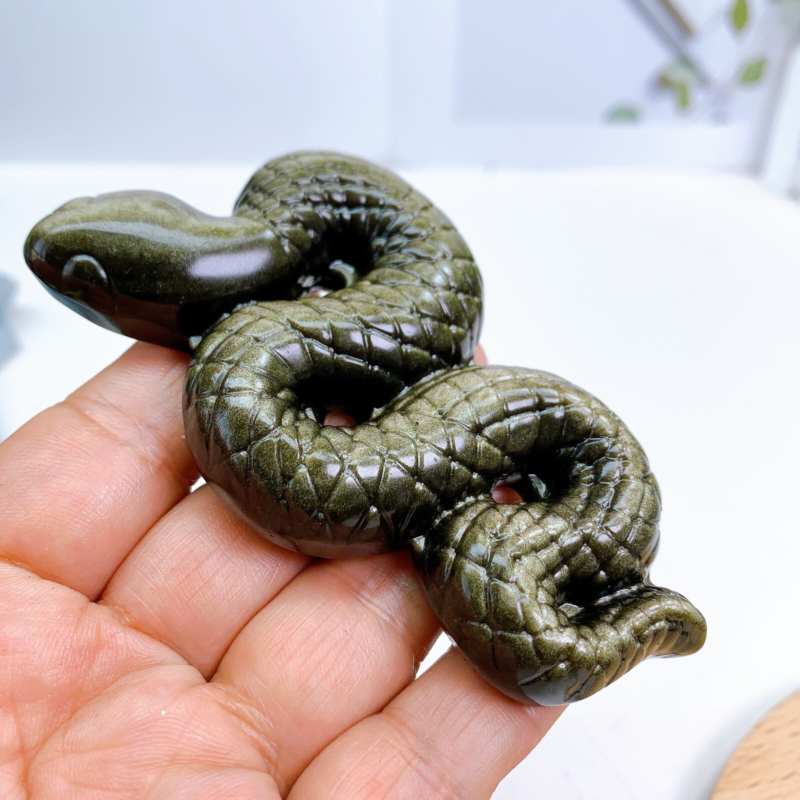 10.5cm Natural Quartz Golden Obsidian Snake Carving Animal Healing Crystal 1pc