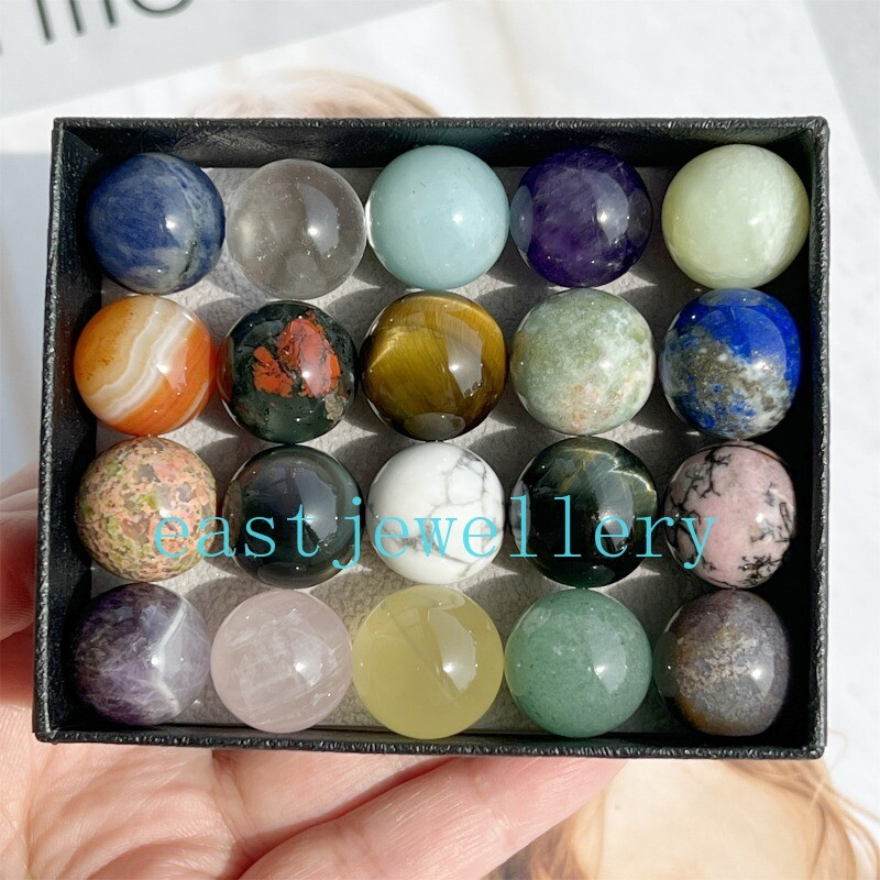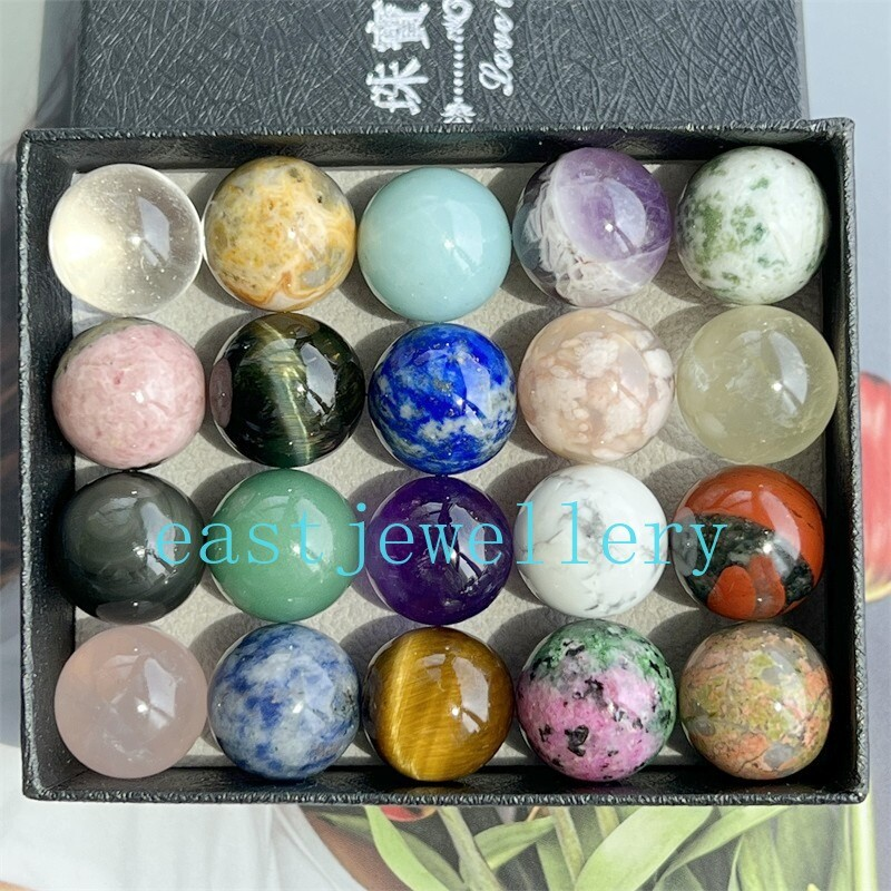 10pcs Natural Mixed Sphere Quartz Crystal Carved Gem Ball Reiki Healing 15mm+
