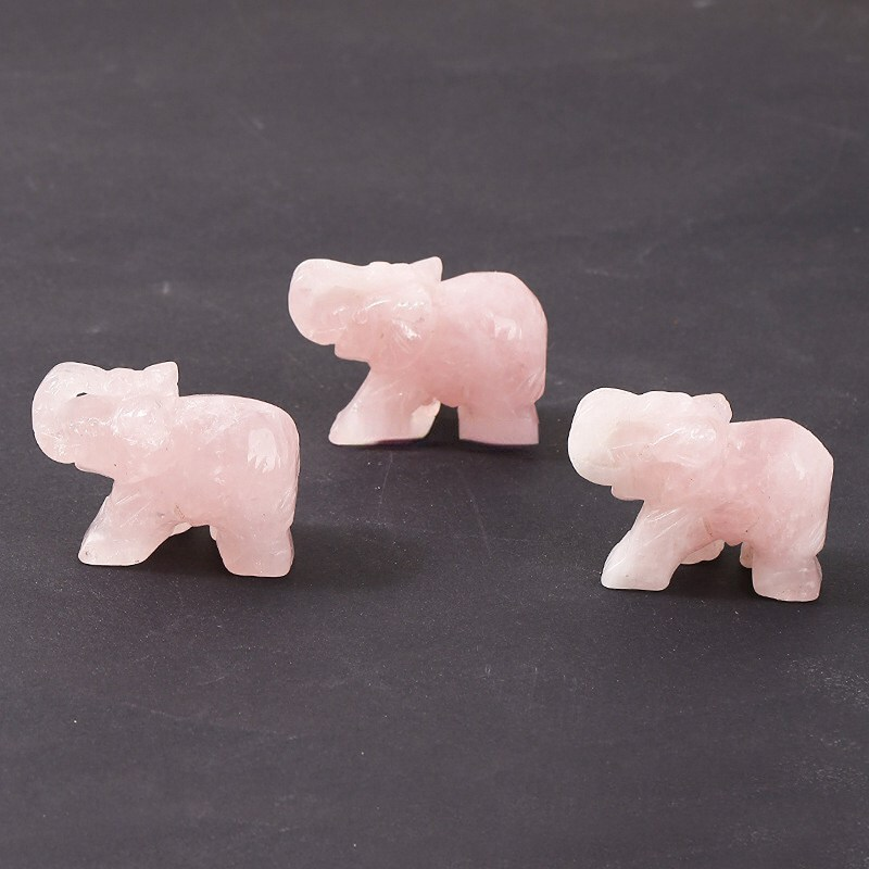 10Pcs Natural Rose Quartz Crystal Carved Elephant Healing Stone Animal Sculpture