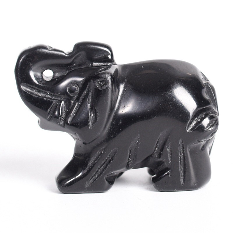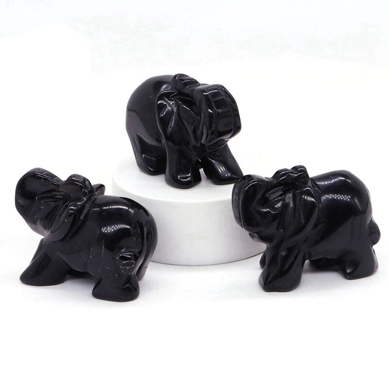 10x Natural Obsidian Quartz Crystal Carved Baby Elephant Polished Animal Decor
