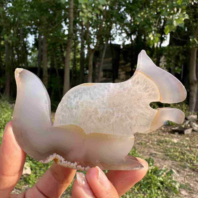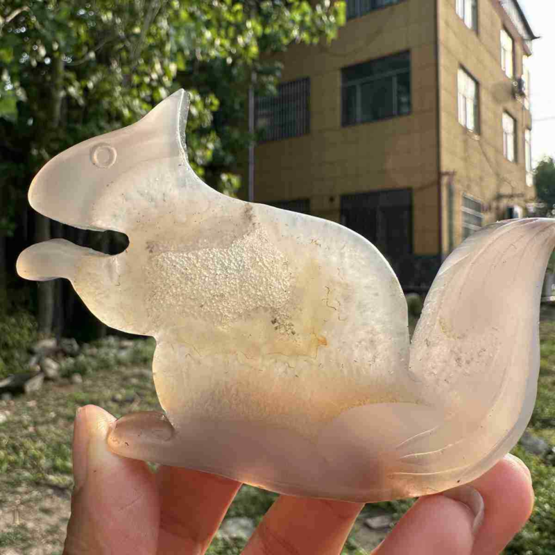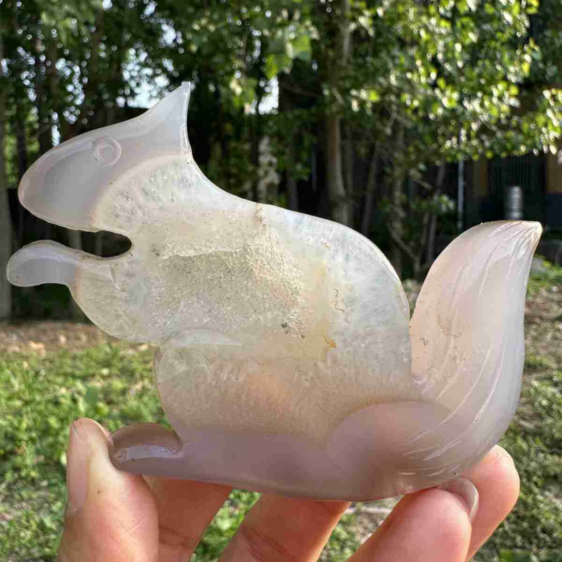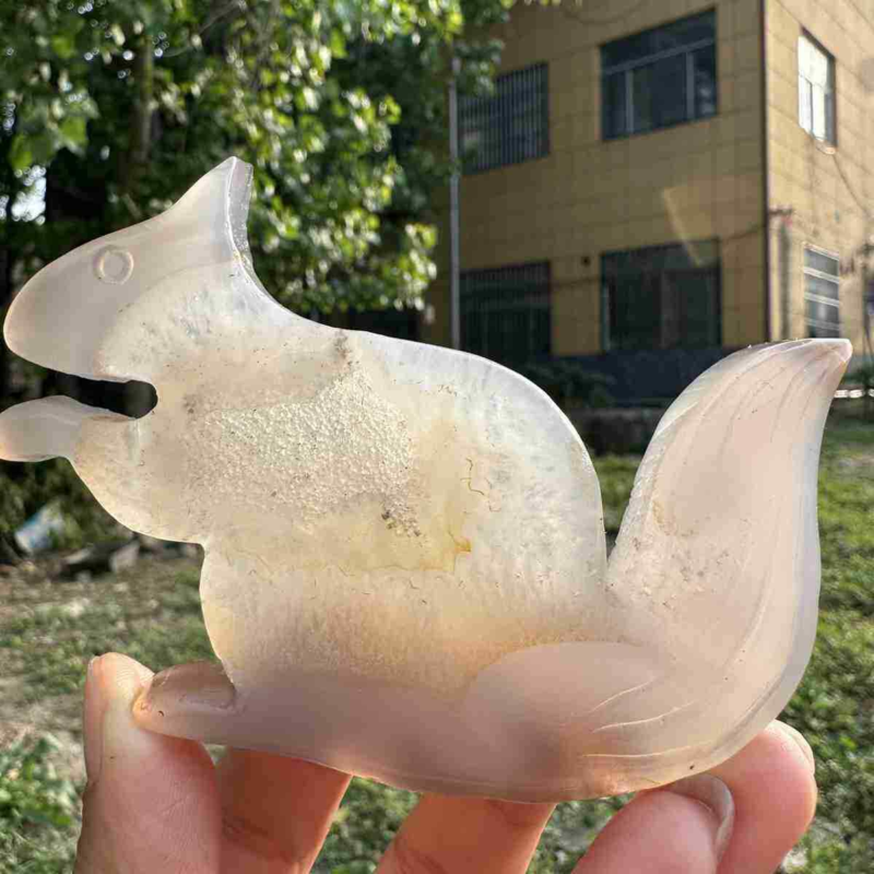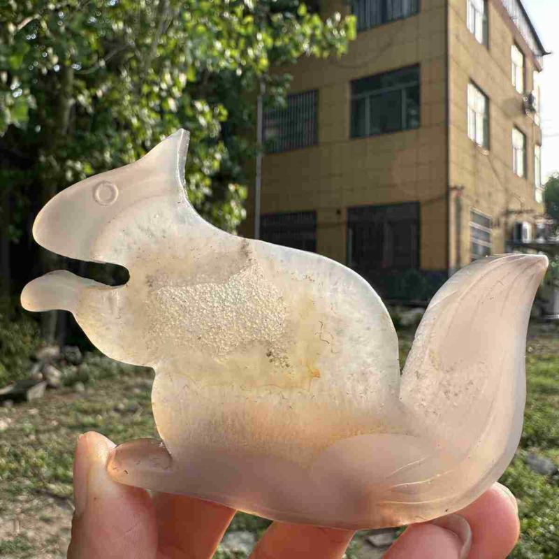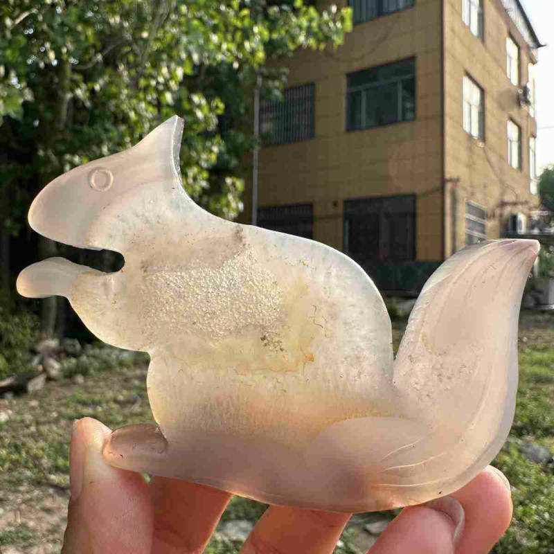 110g natural agate hand carved squirrel skull quartz crystal cluster reiki