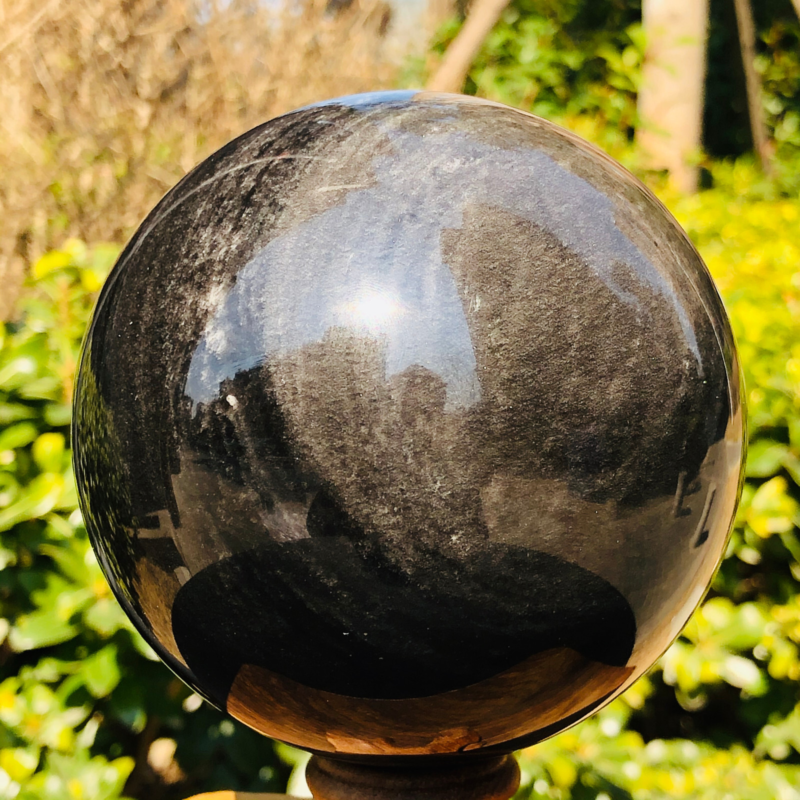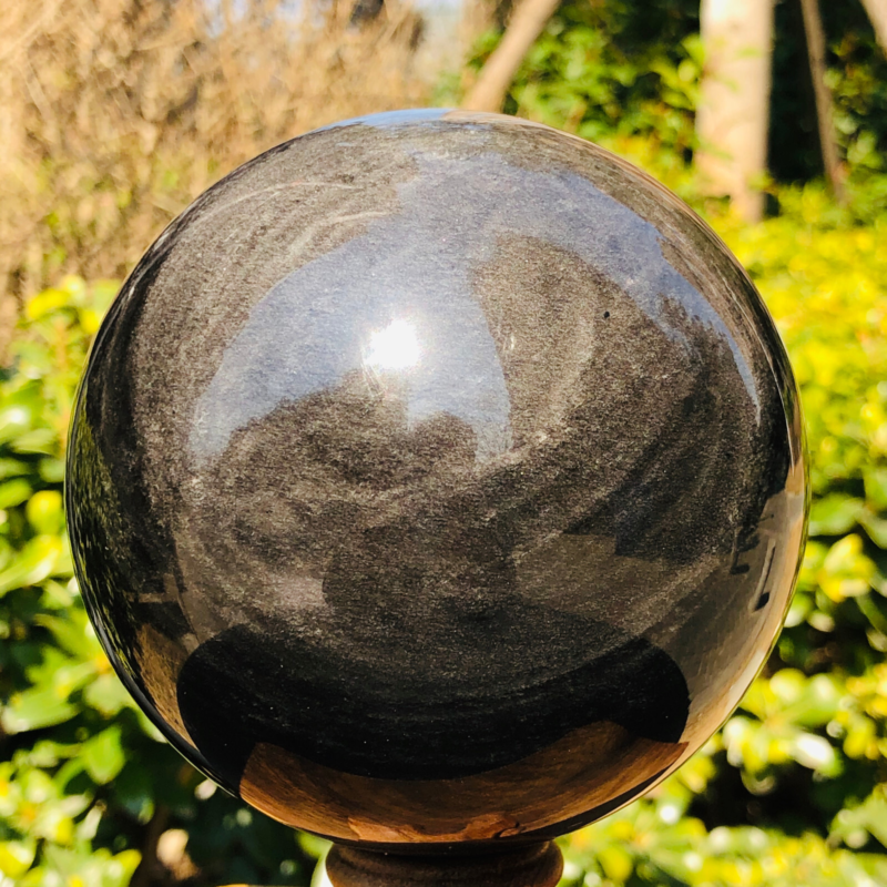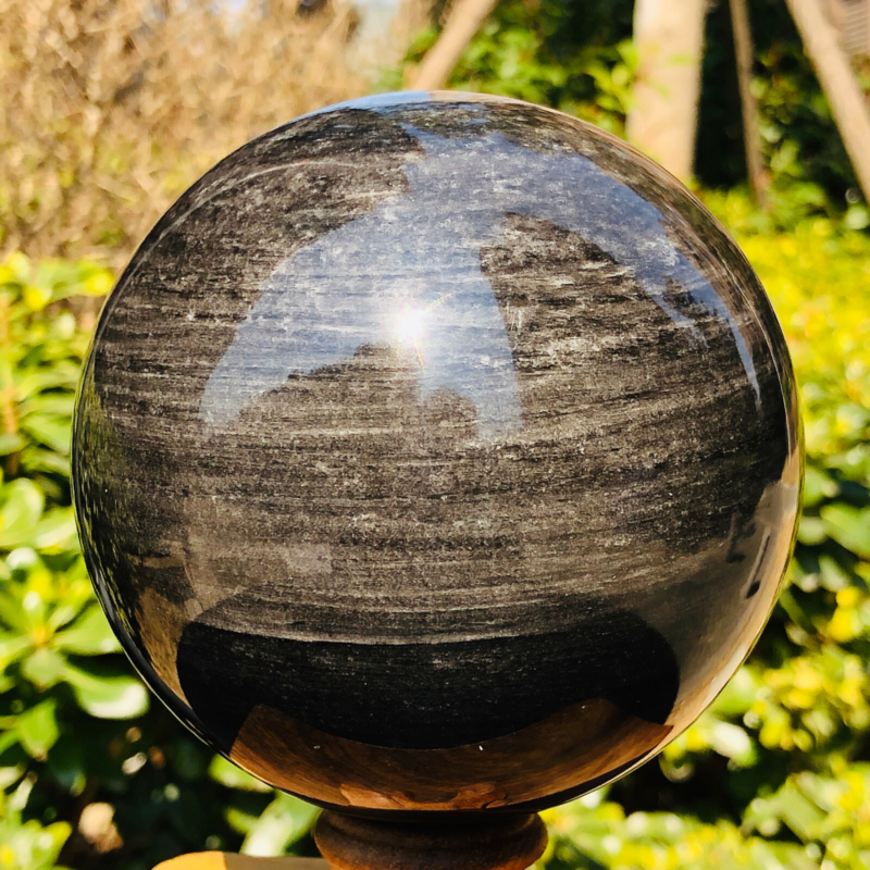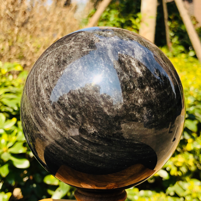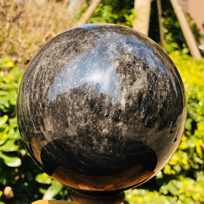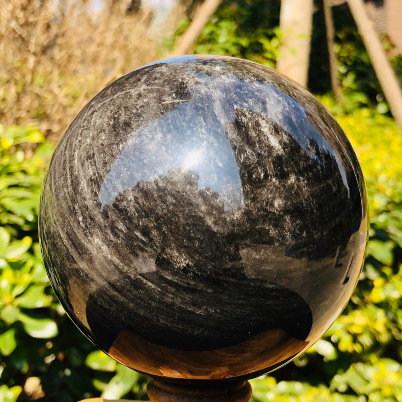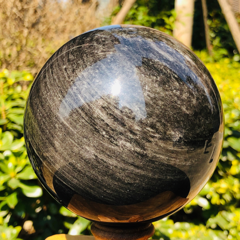 1380g Natural Silver Obsidian Quartz Crystal Ball Sphere Healing HH318