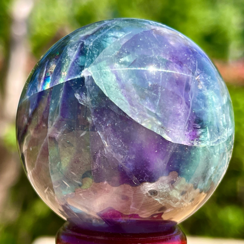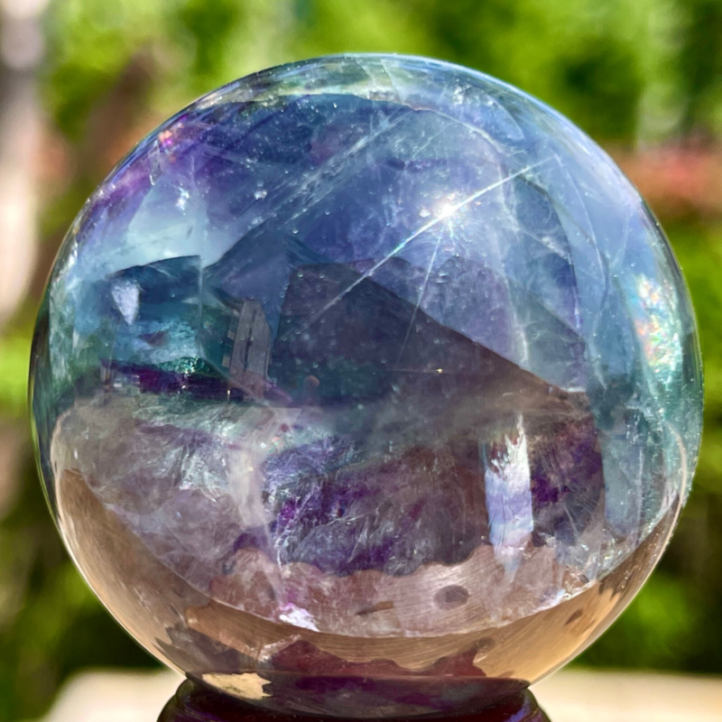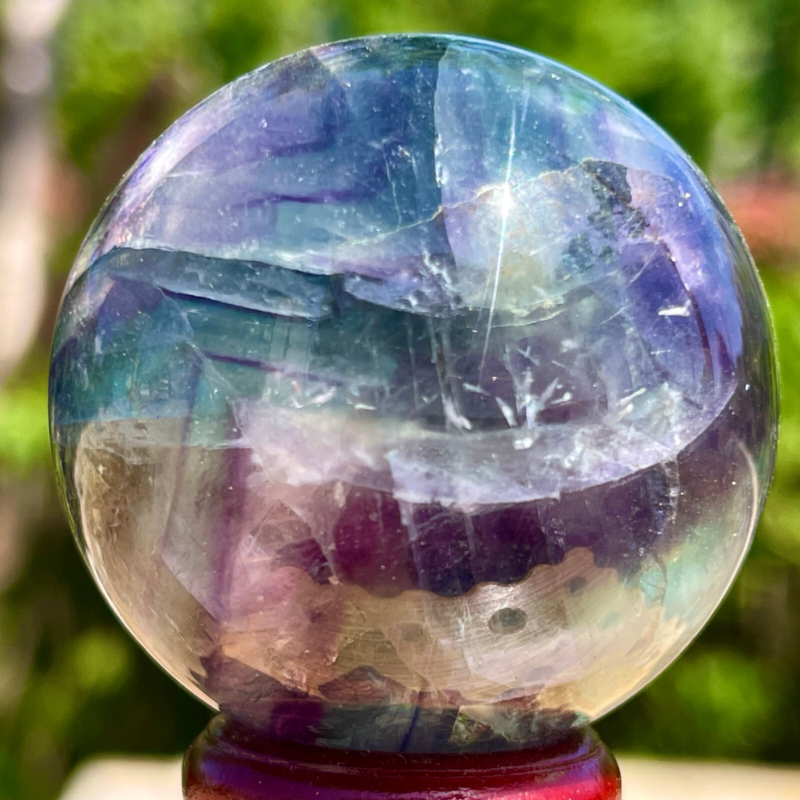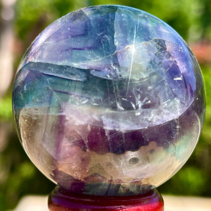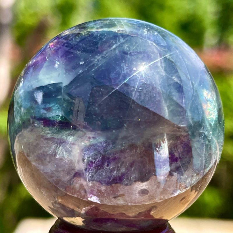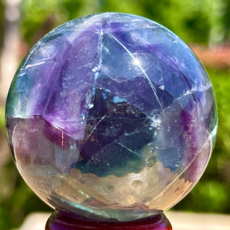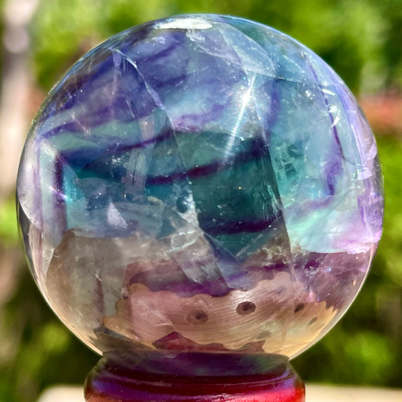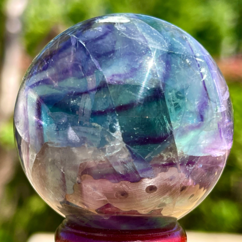 159G Rare natural snowflake feather fluorite crystal ball therapeutic ball