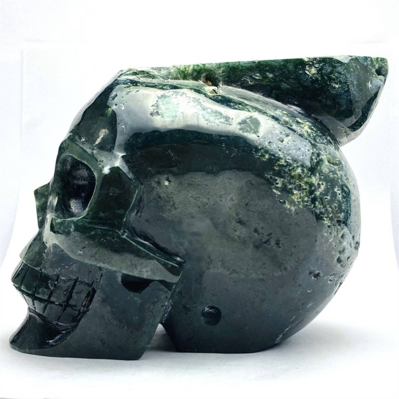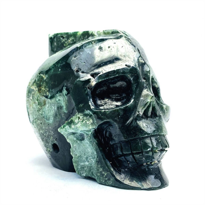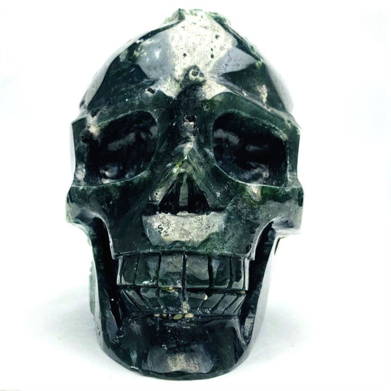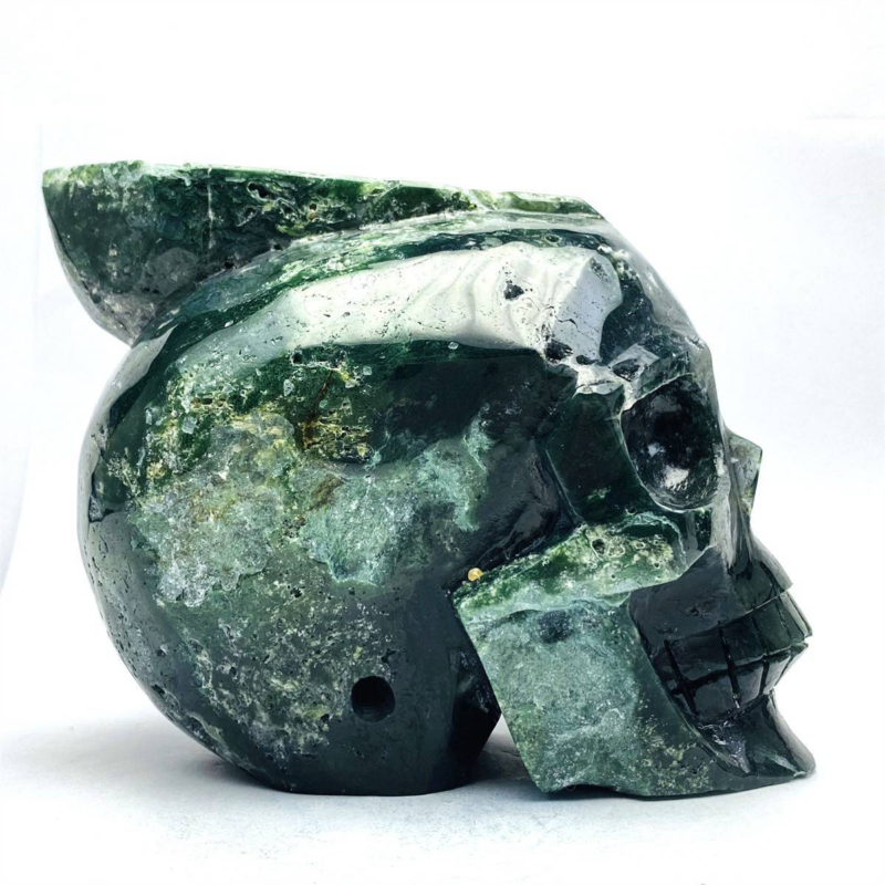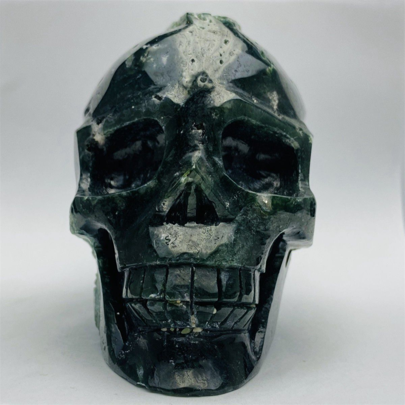 1600g Natural Nice Aquatic agate Quartz Skull Hand Carved Crystal Healing Skull