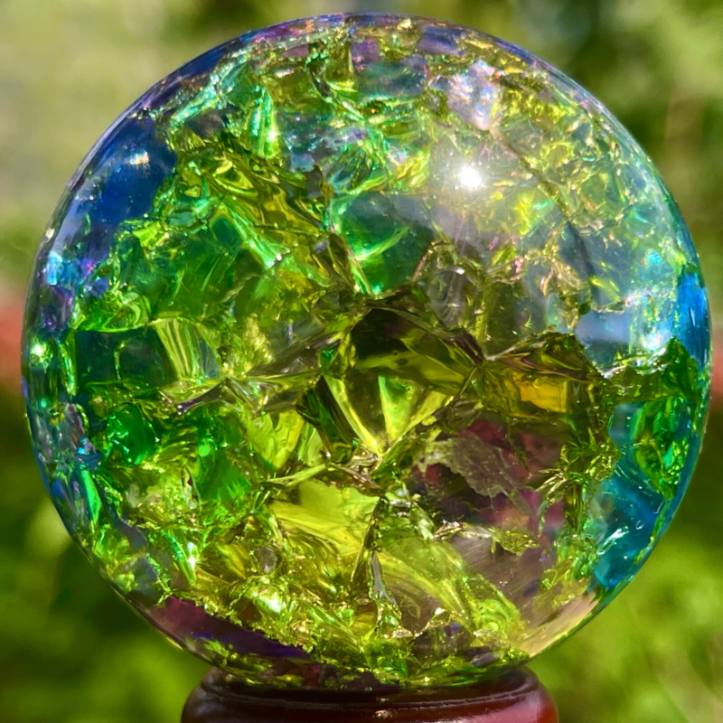 165G Natural Titanium Rainbow Quartz sphere Crystal ball Healing