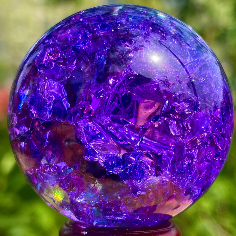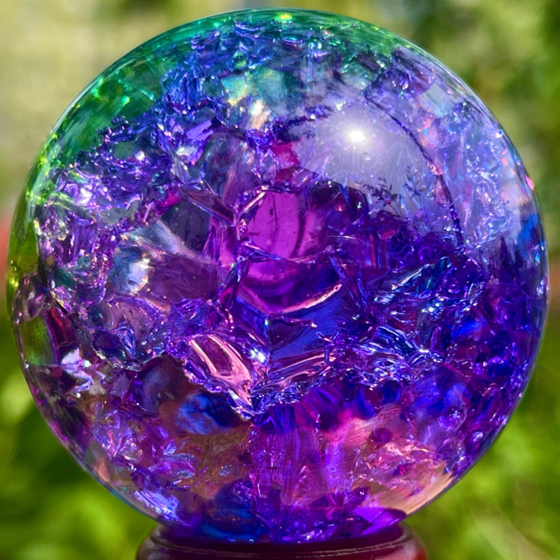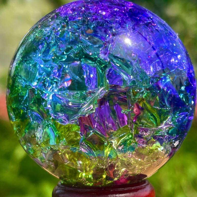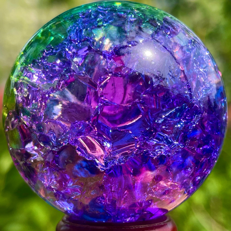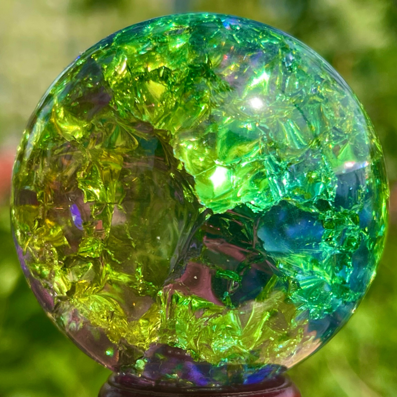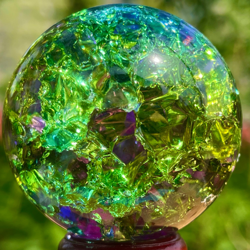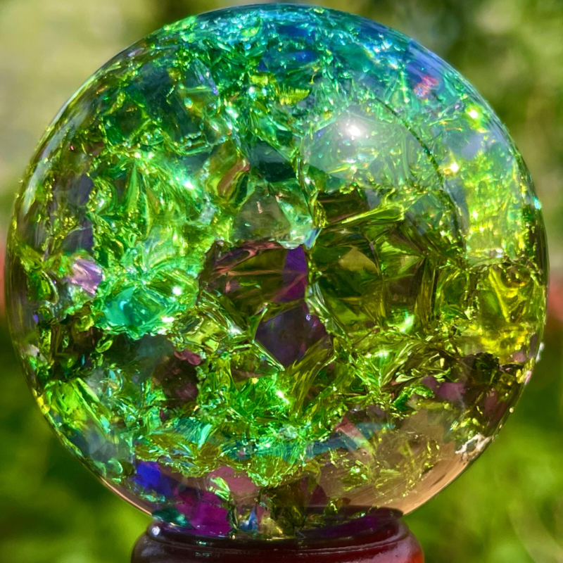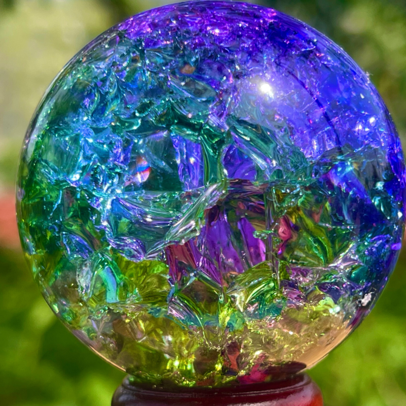 168G Natural Titanium Rainbow Quartz sphere Crystal ball Healing