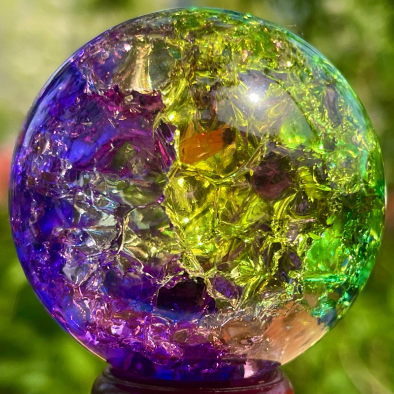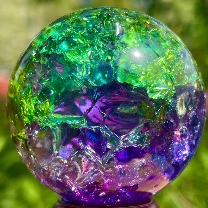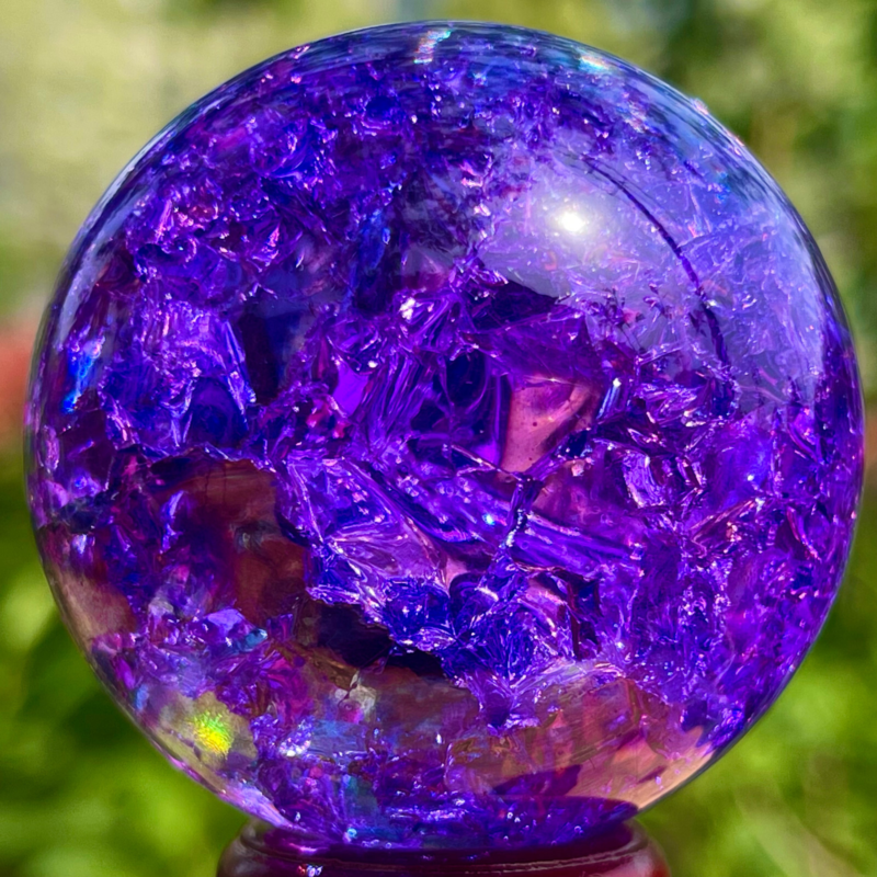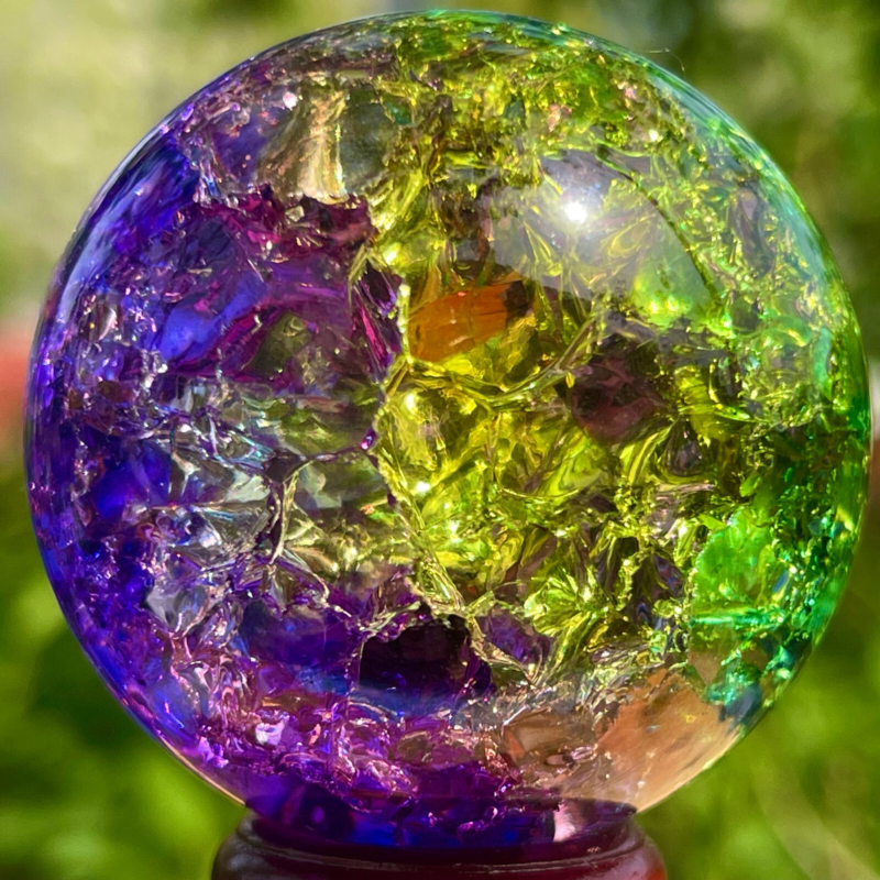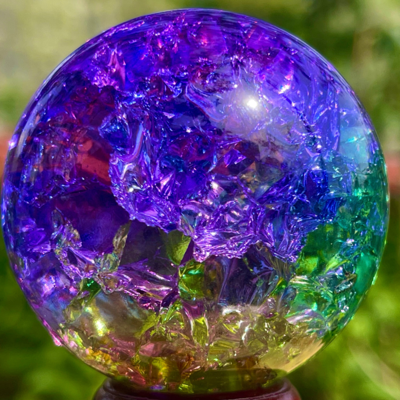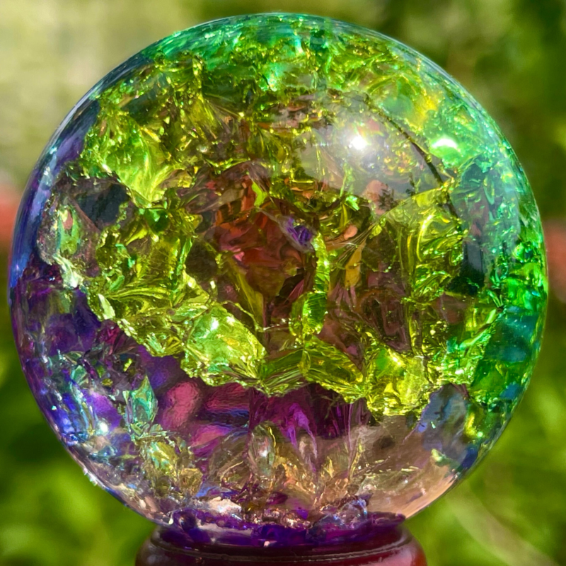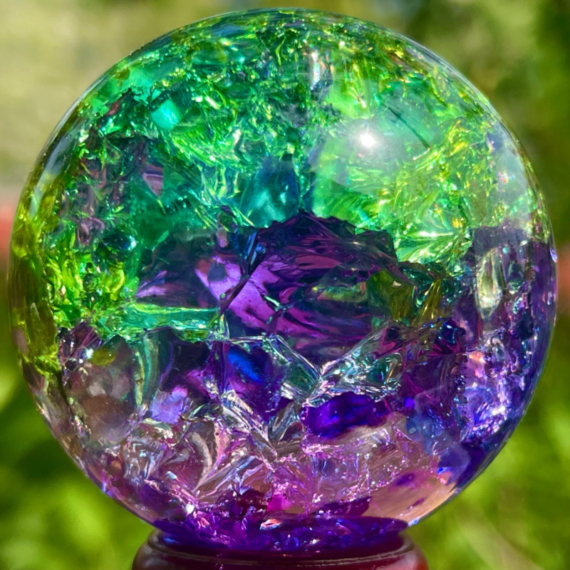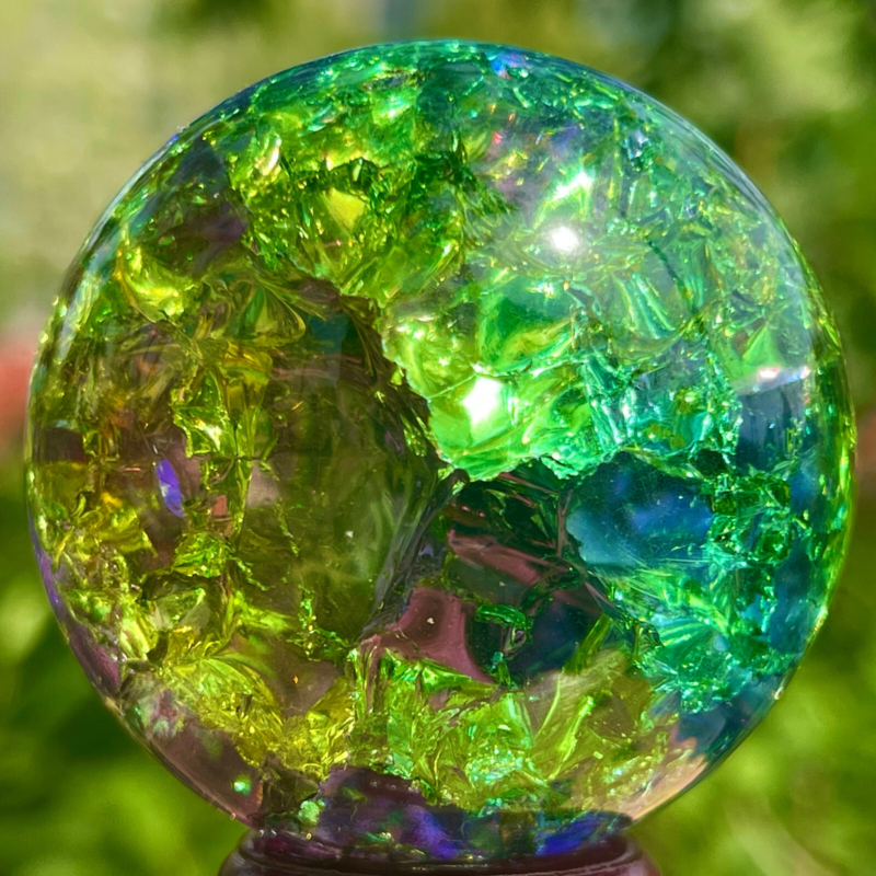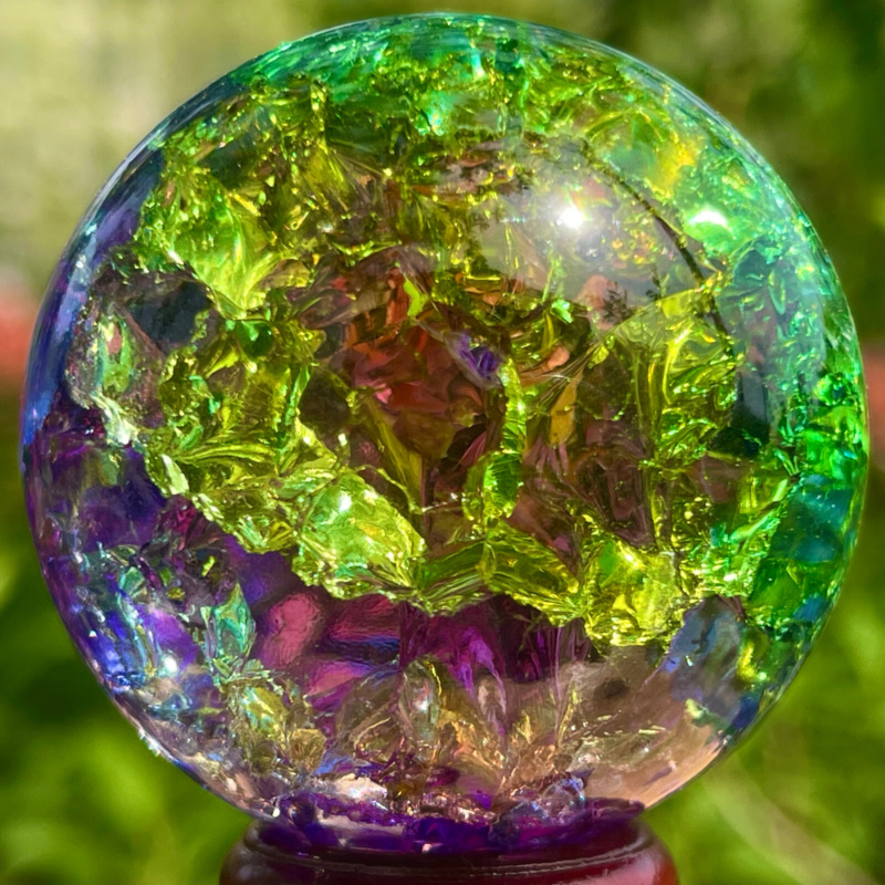 168G Natural Titanium Rainbow Quartz sphere Crystal ball Healing