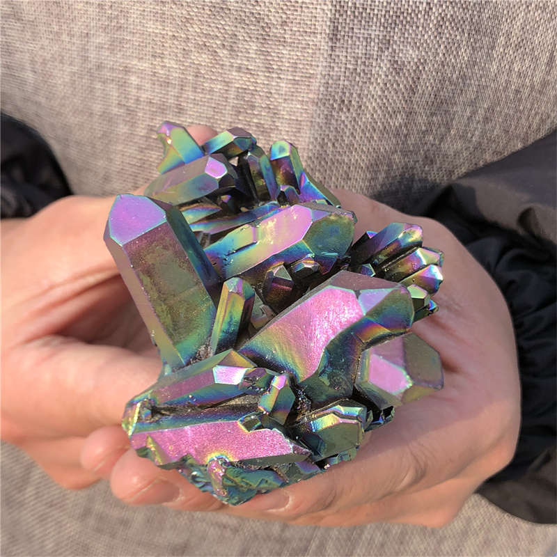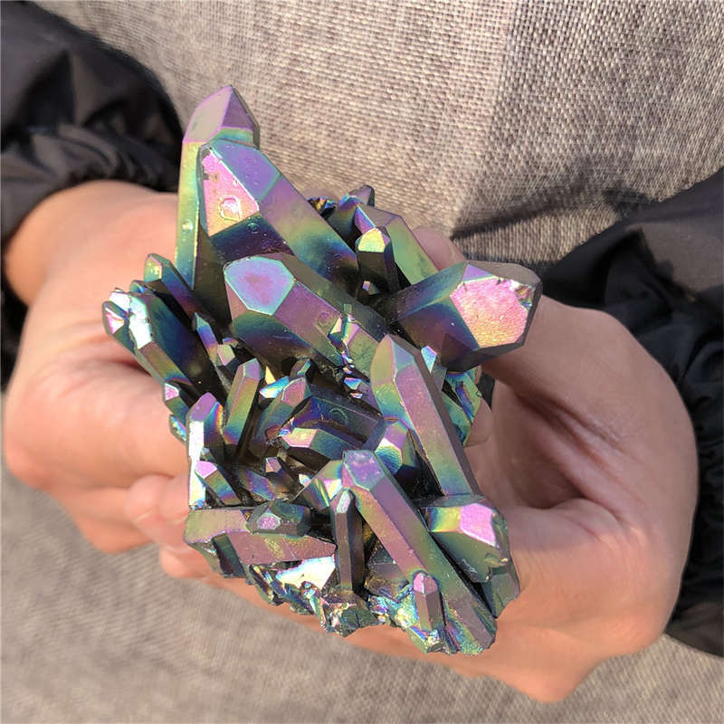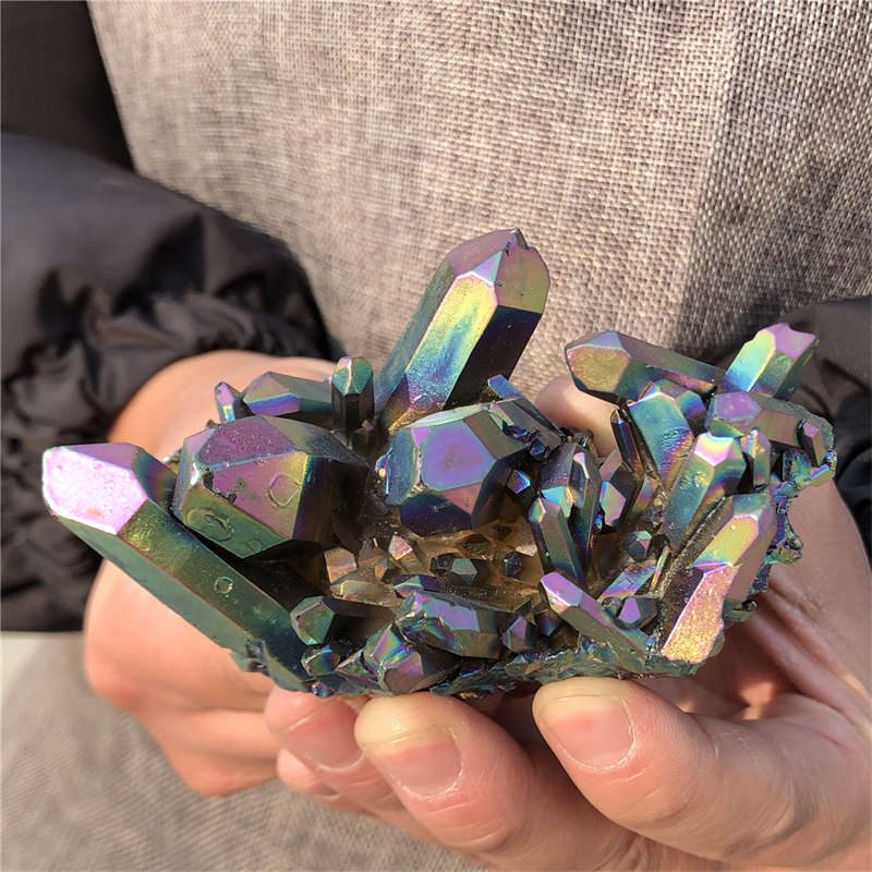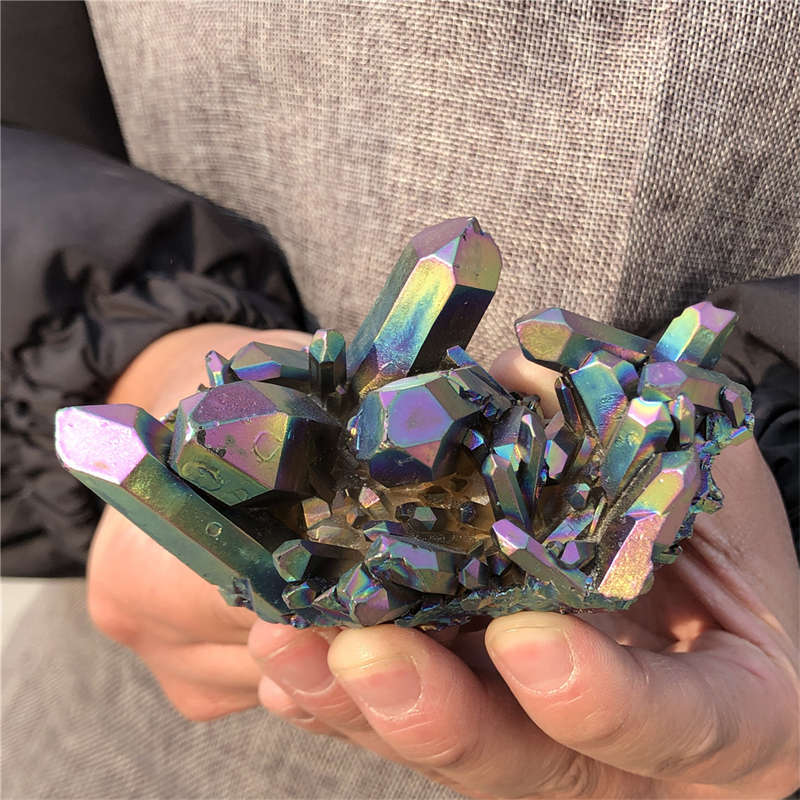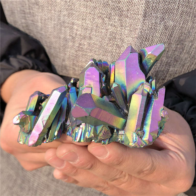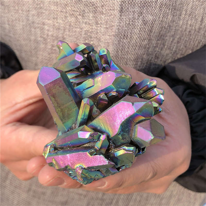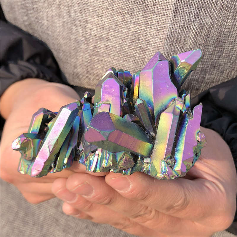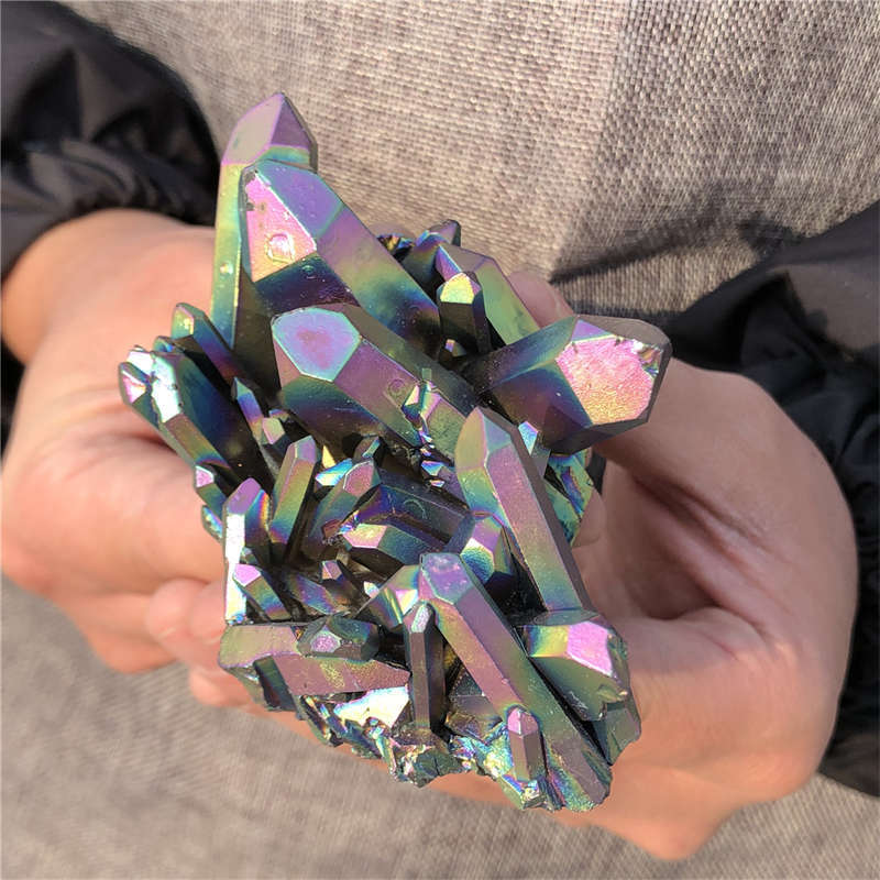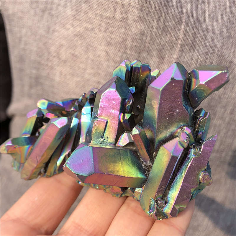 190g Electroplate Rainbow cluster quartz crystal mineral specimen reiki healing