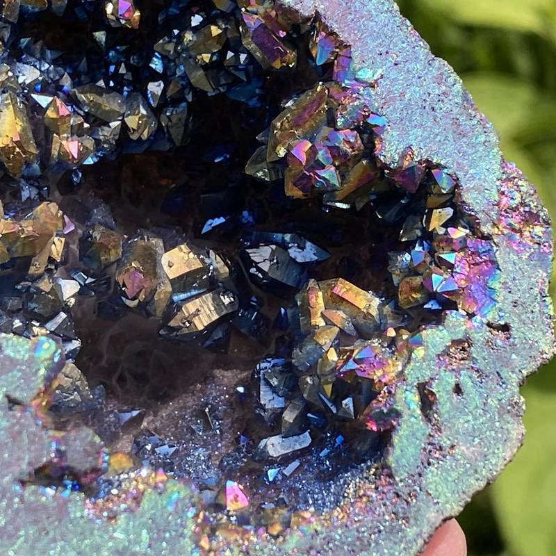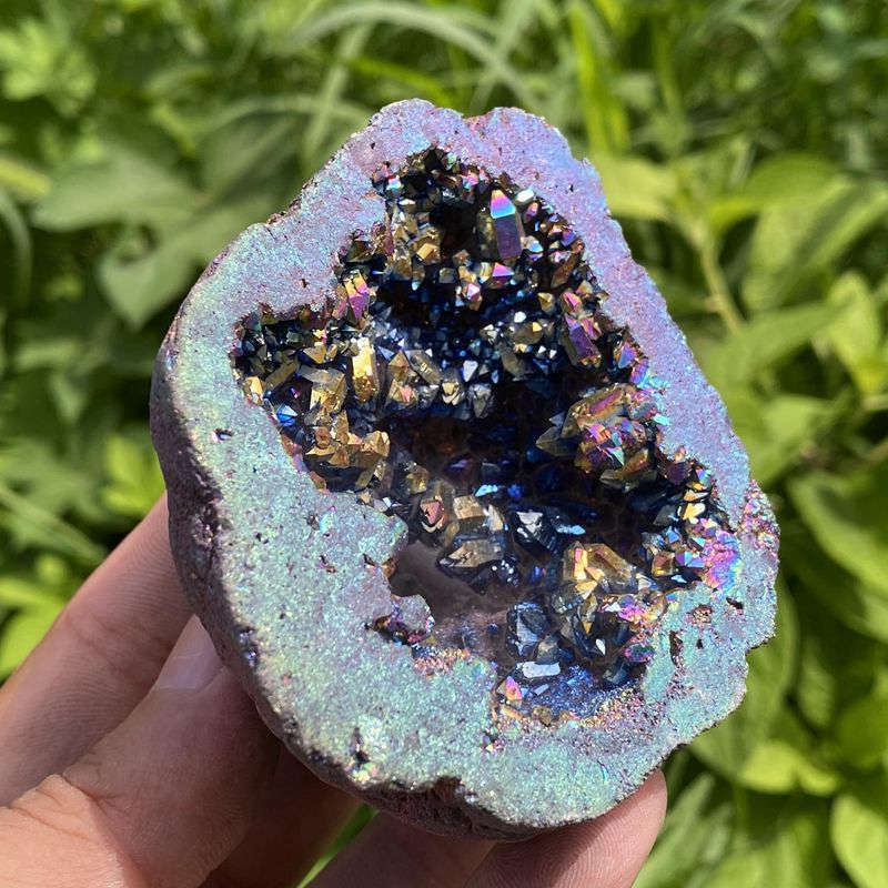 190g Electroplating color Natural Crystal Agate cave ornaments crystal cluster q
