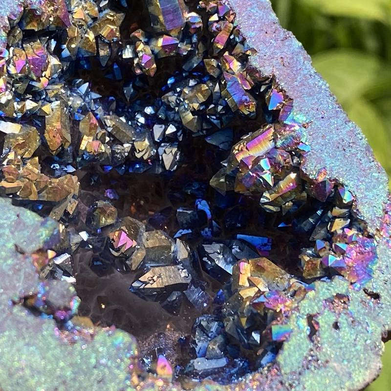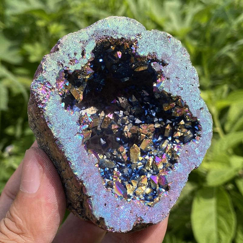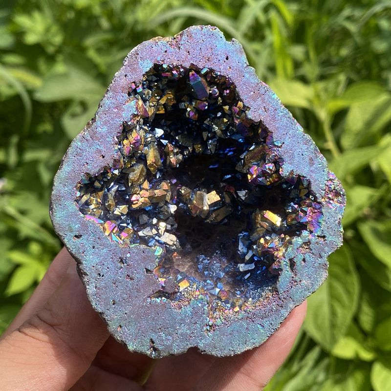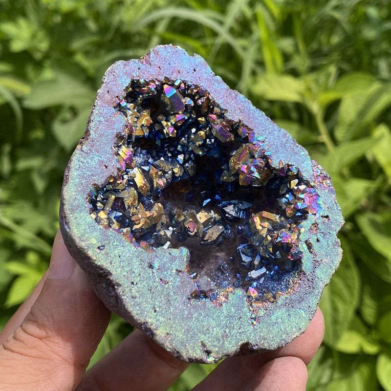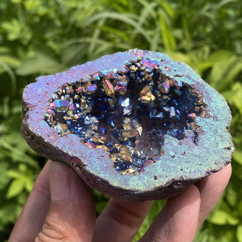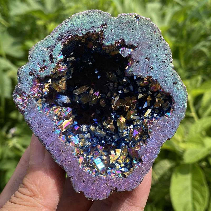 190g Electroplating color Natural Crystal Agate cave ornaments crystal cluster q