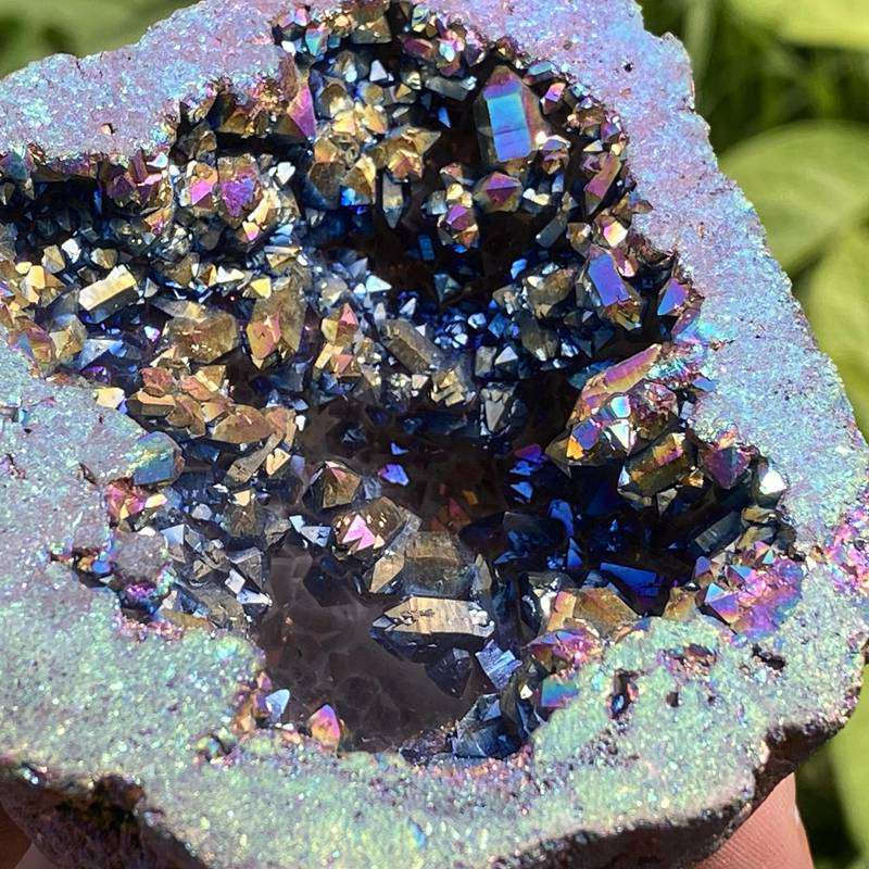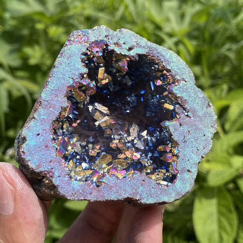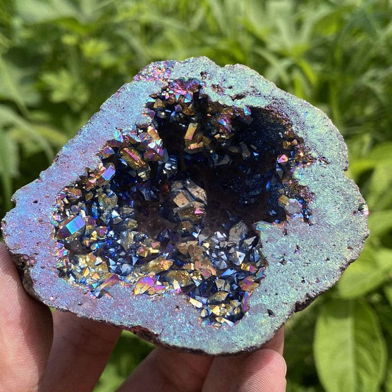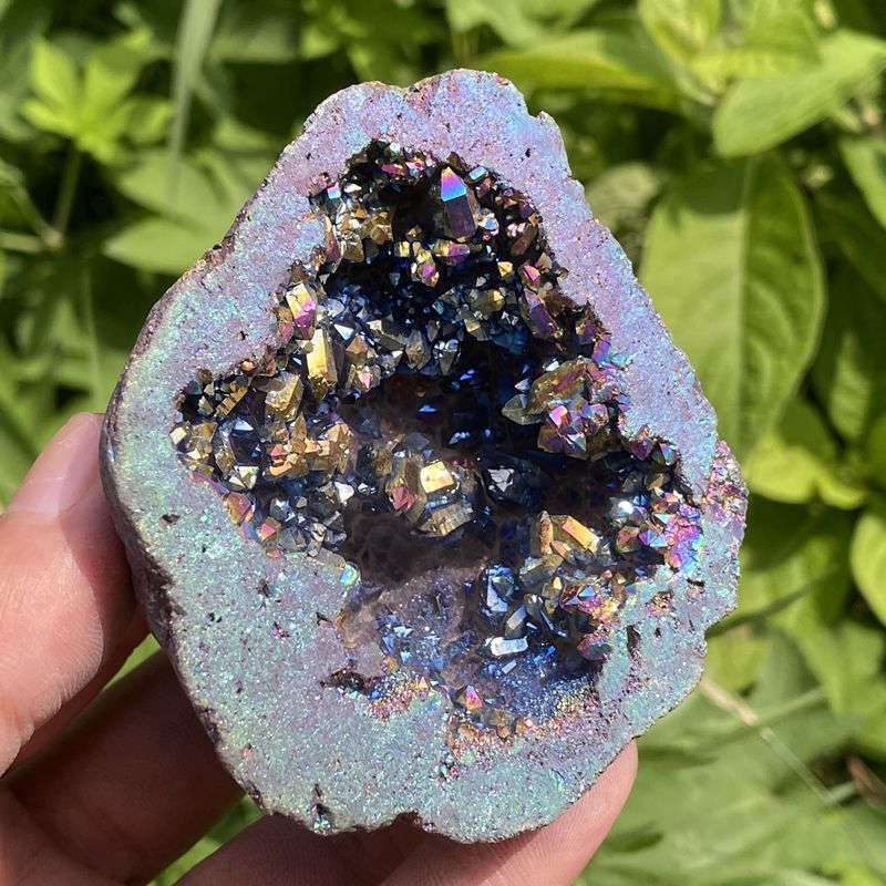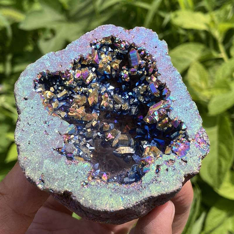 190g Electroplating color Natural Crystal Agate cave ornaments crystal cluster q
