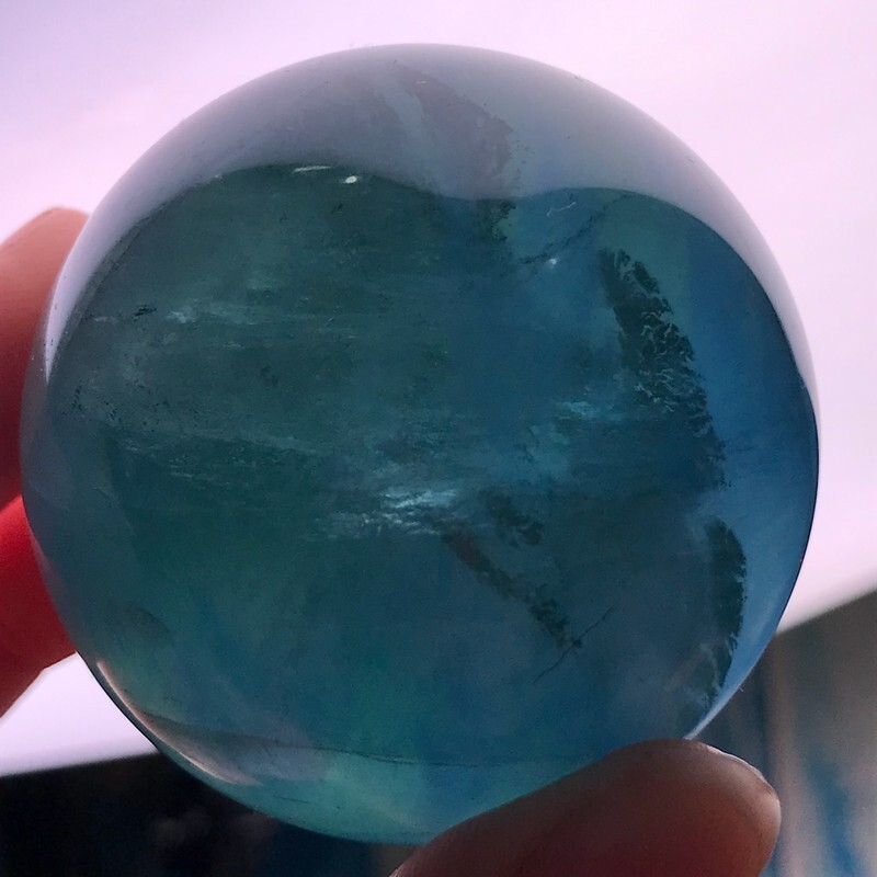 193G Natural Blue Fluorite Quartz Crystal Ball Sphere Polished Mineral Healing