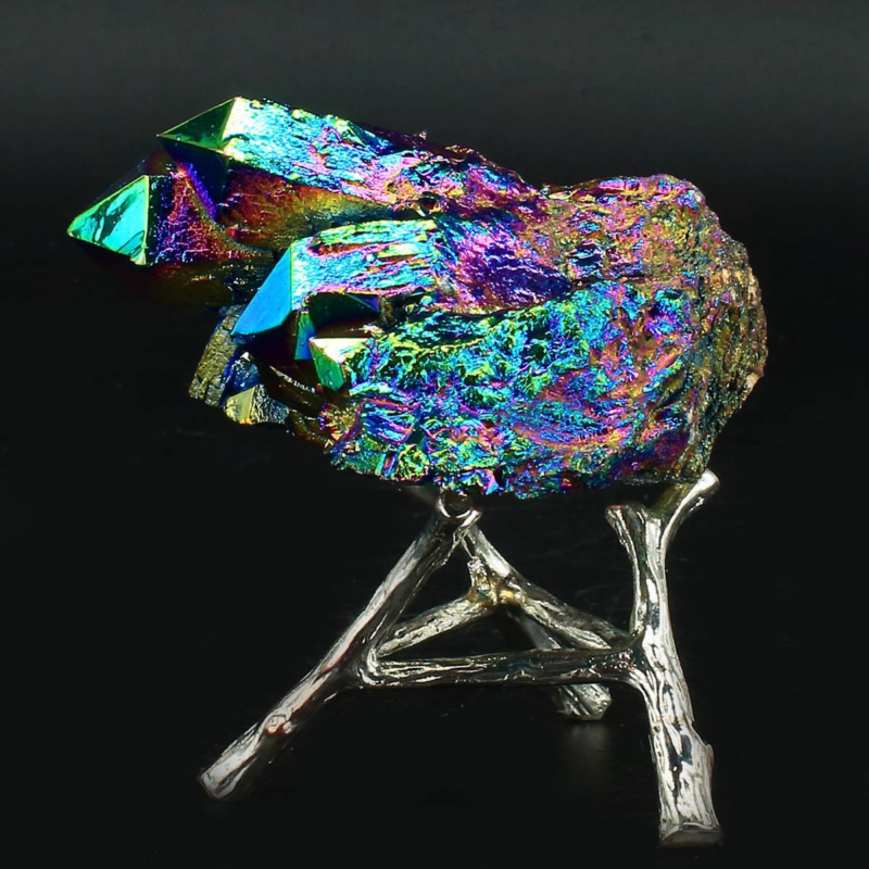 198g Colourful Crystal Cluster Quartz Mineral Specimen Decoration Electroplate