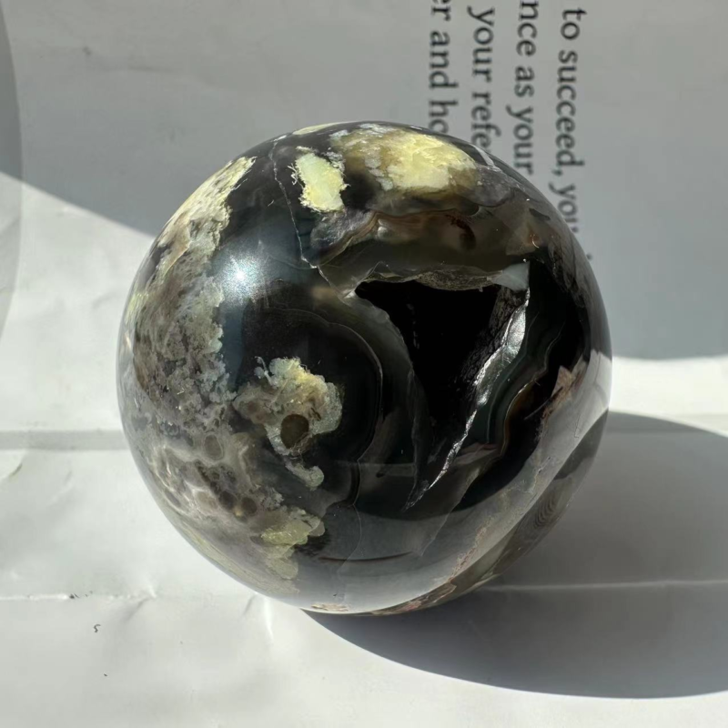 1pc 180+Natural Volcanic agate Ball quartz crystal sphere Reiki Healing 50mm+
