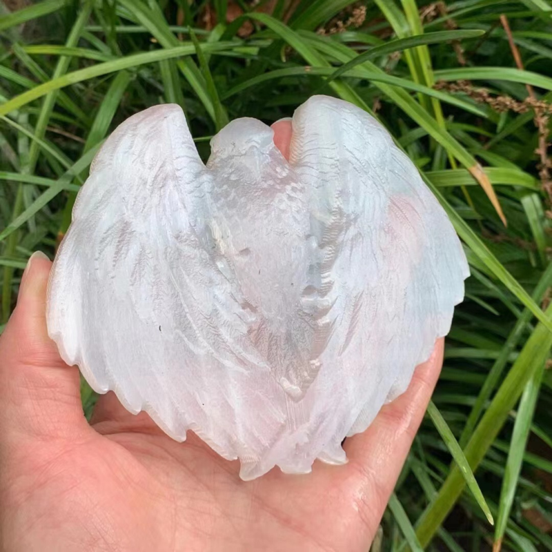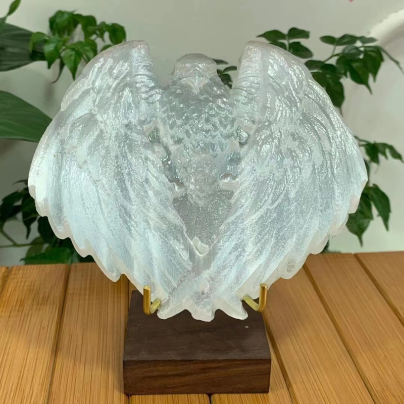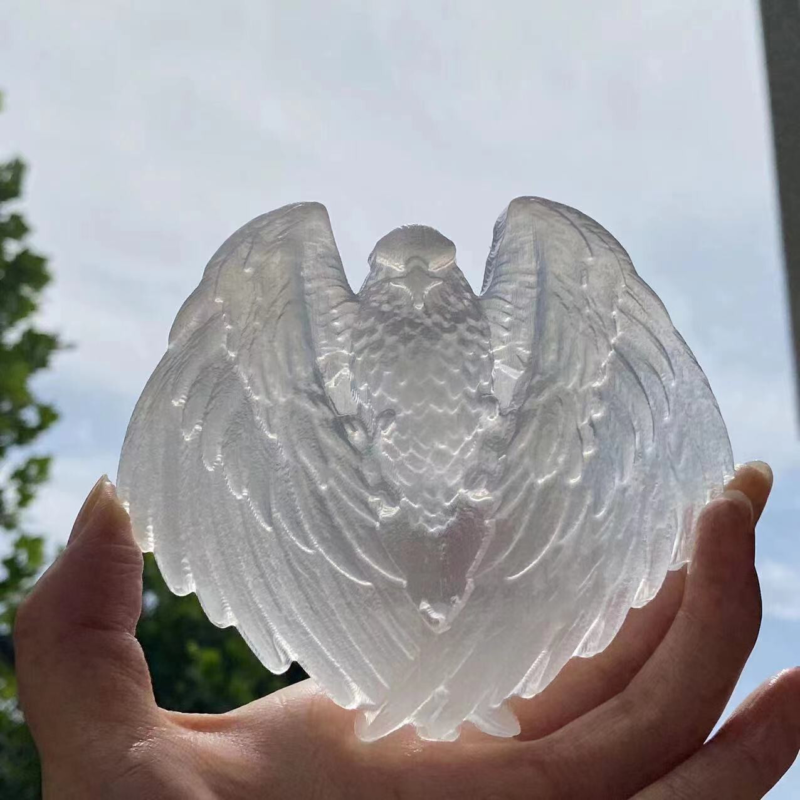 1PC gypsum eagle skull quartz crystal carved skull Reiki healing gem decor