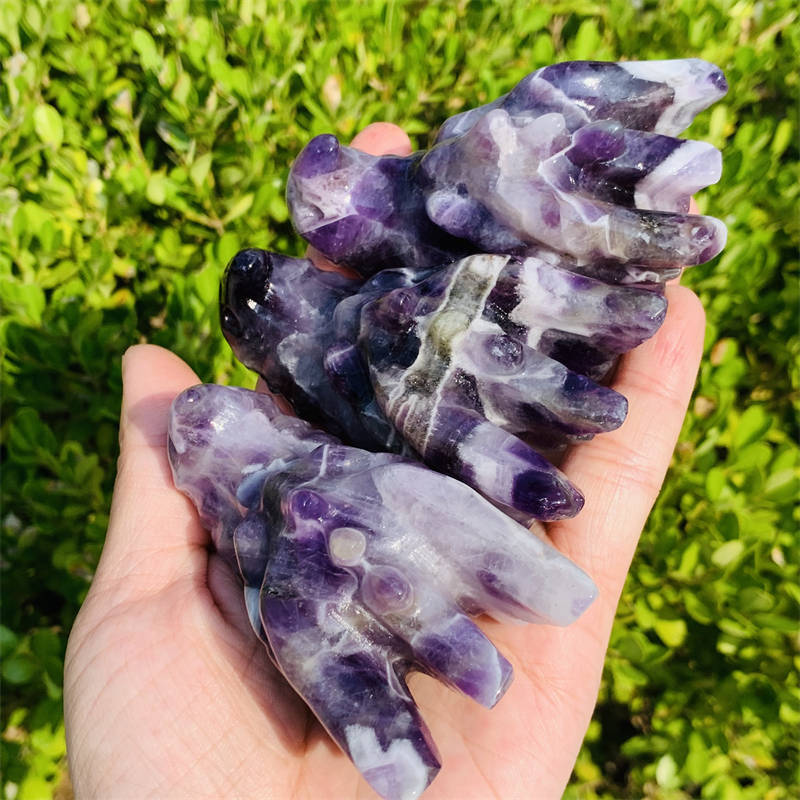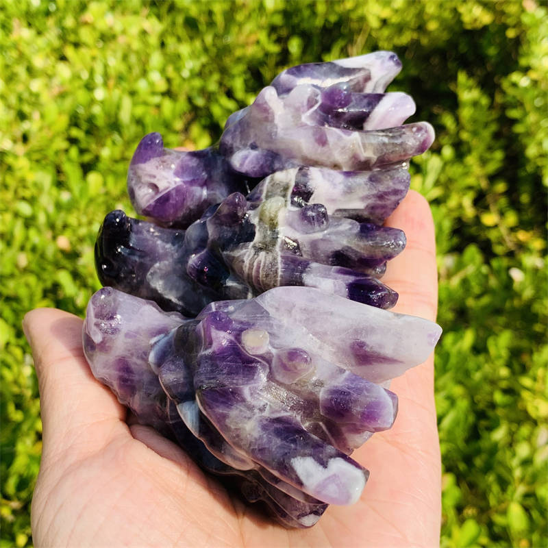1pc Natural dream amethyst dragon Quartz Crystal skull Reiki Healing