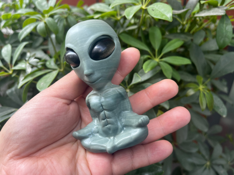 1pc Natural Lushan jade Quartz Hand Carved Alien Skull Crystal Reiki Heal Gift