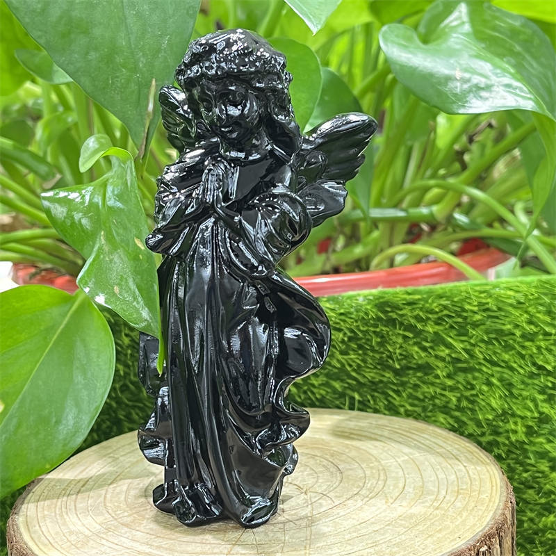 1pc Natural obsidian Angel girl hand carved Quartz Crystal stone skull Reiki Hea