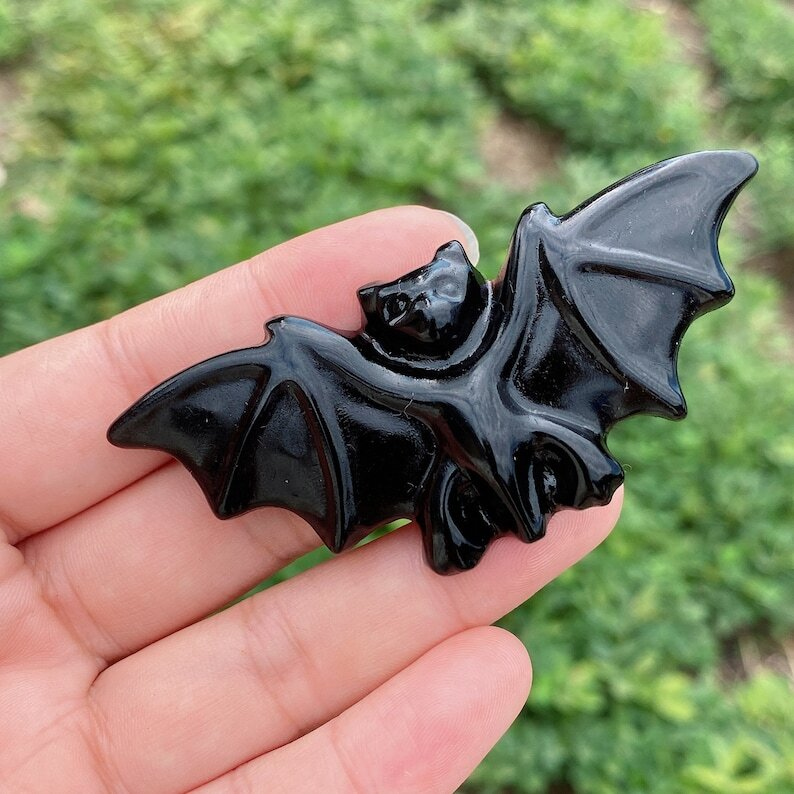 1PC Natural Obsidian Bat Quartz Crystal Decoration Heal Gifts Energy Animal 20g+