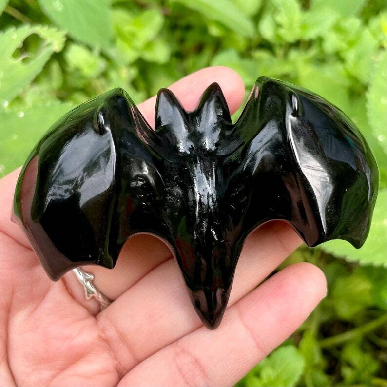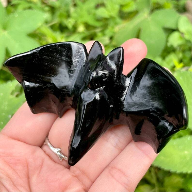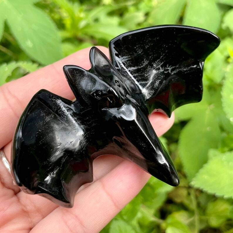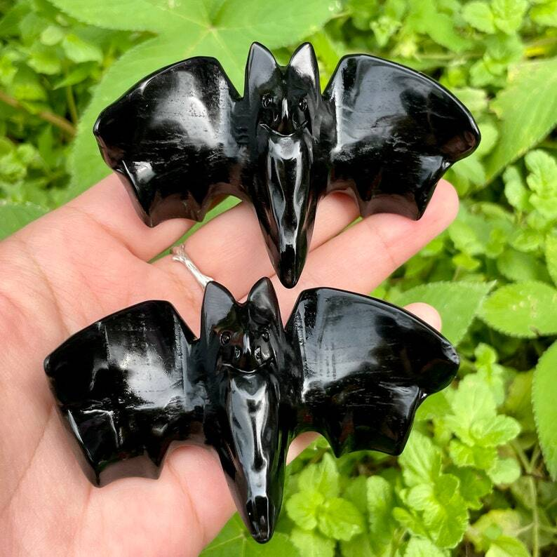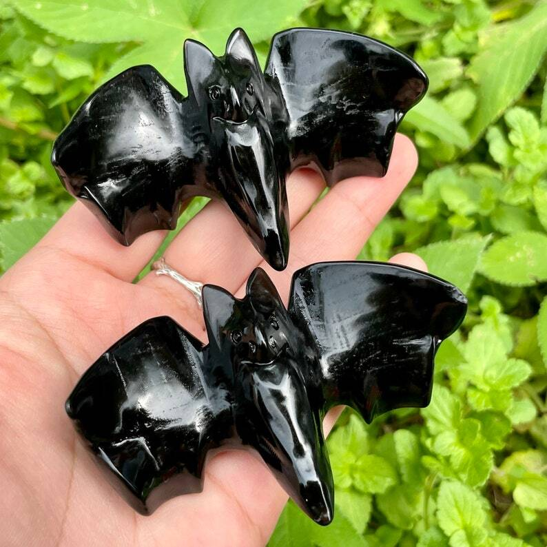 1pc Natural Obsidian Bat Quartz Crystal Decoration Healing Gifts Energy Animal