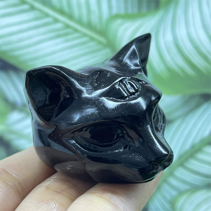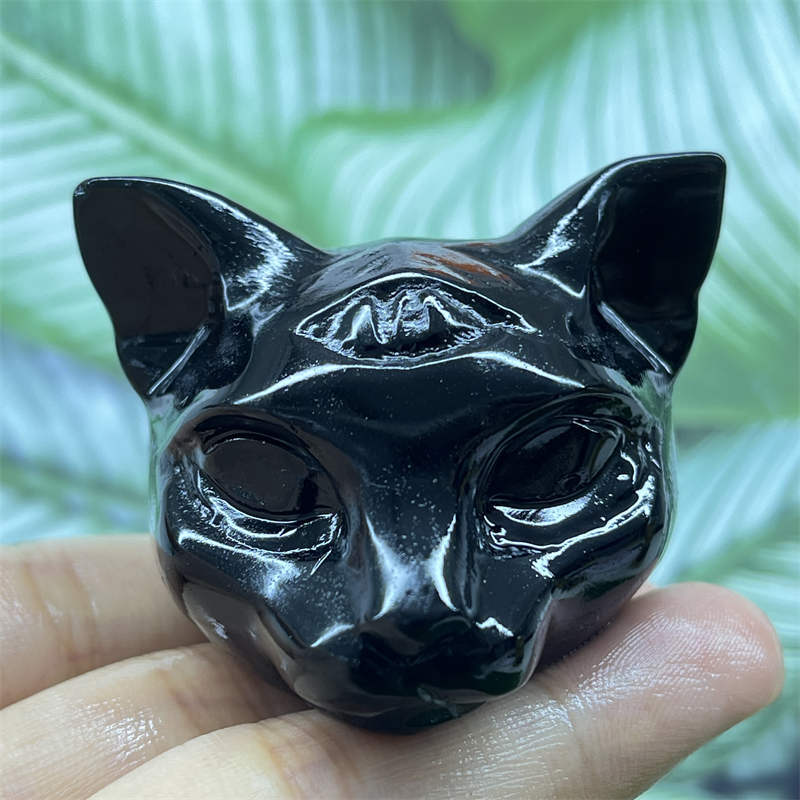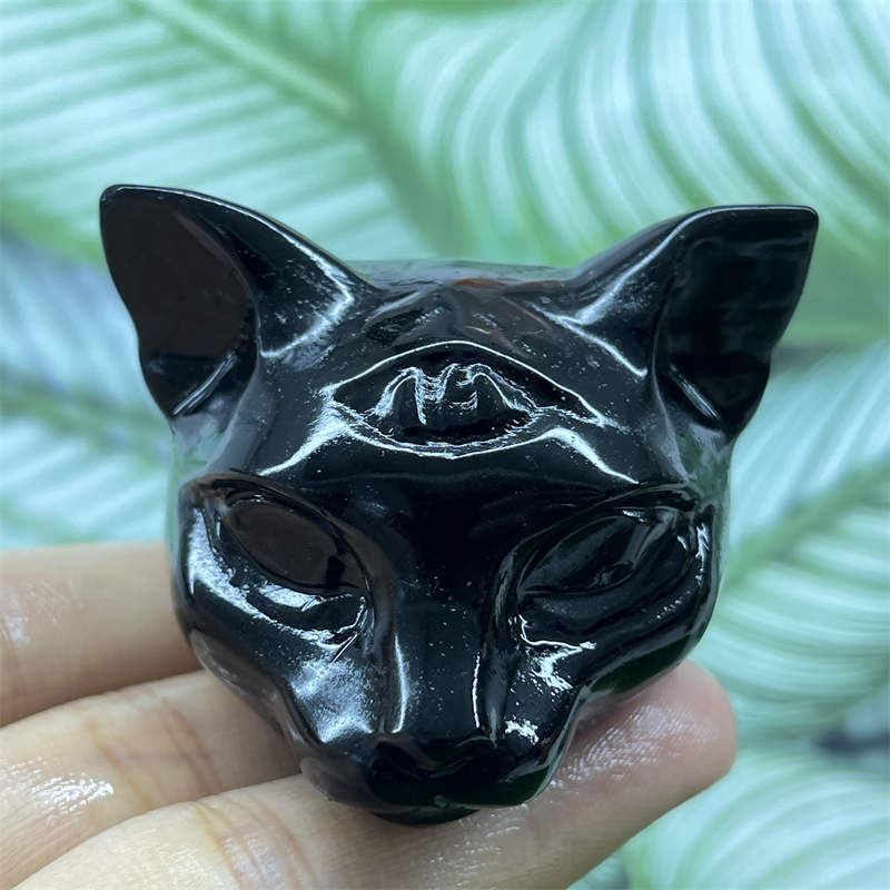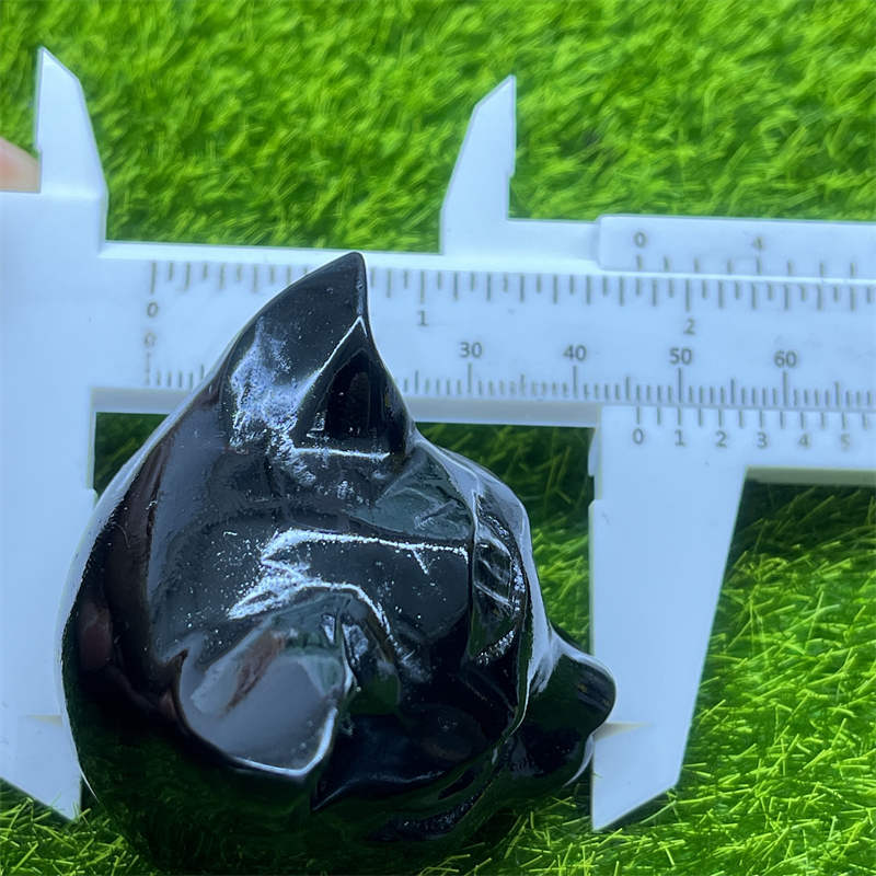 1pc Natural obsidian cat skull hand carved Quartz Crystal animal skull Reiki Hea