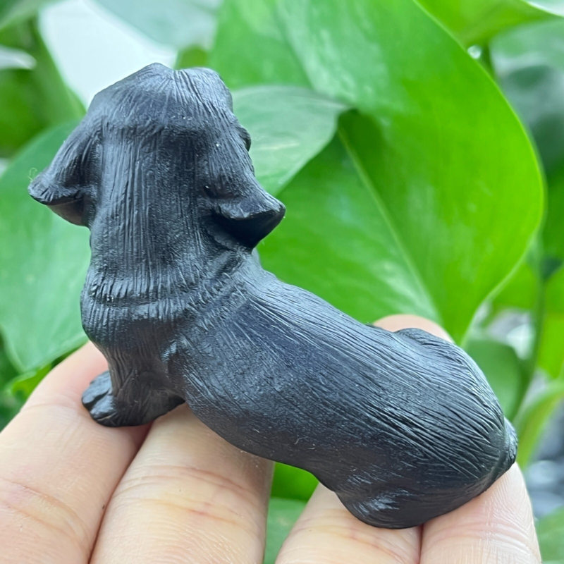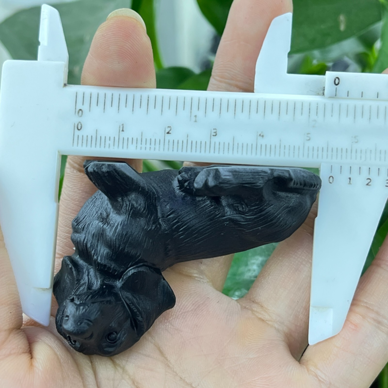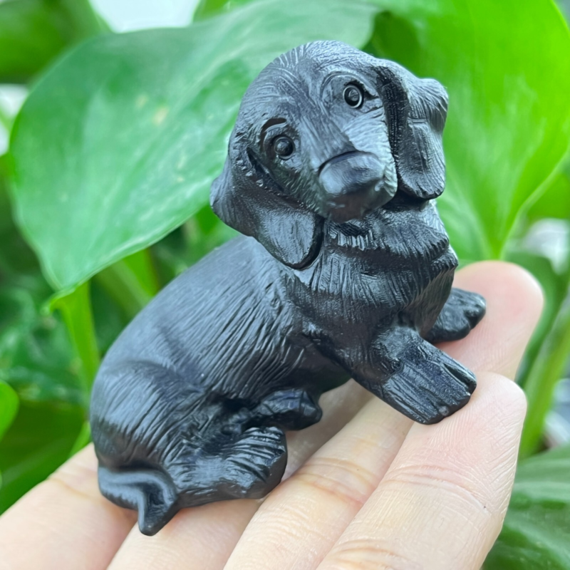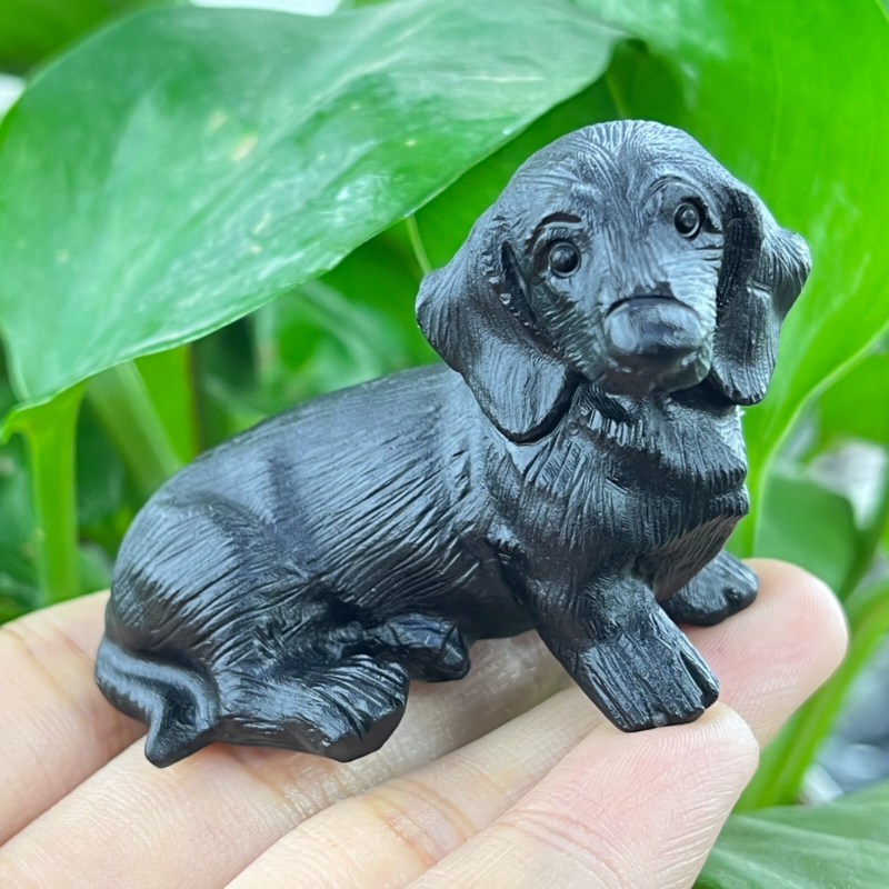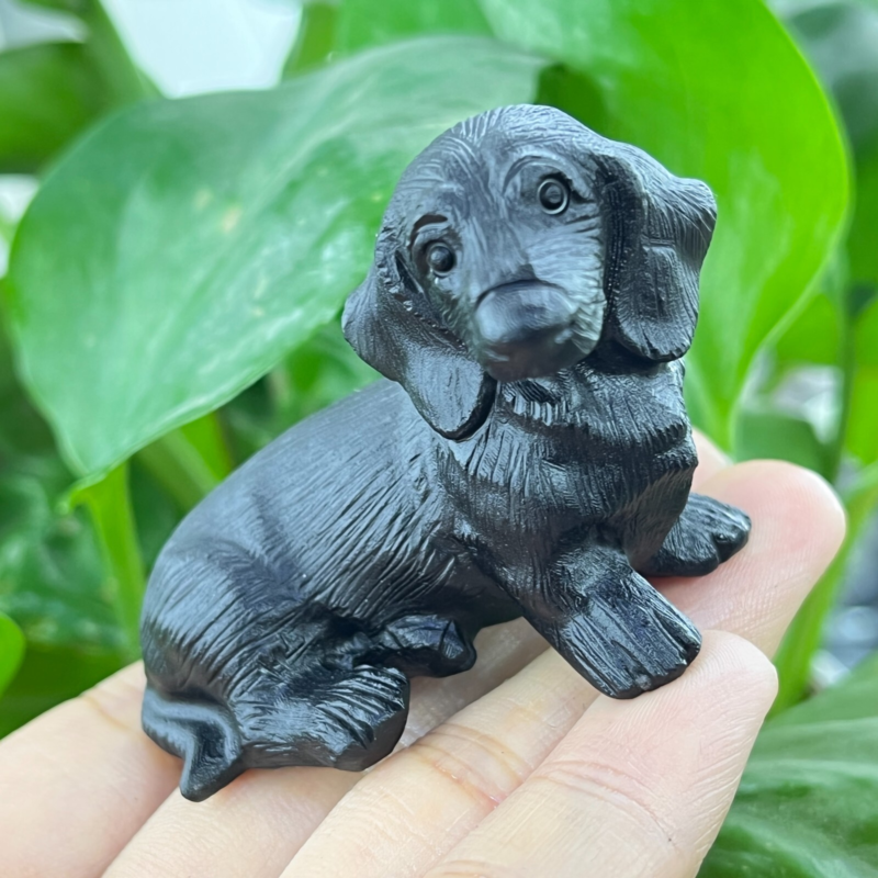 1pc Natural obsidian dachshund dog carved quartz crystal animal skull Reiki 2"