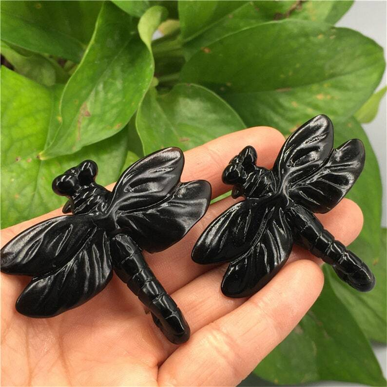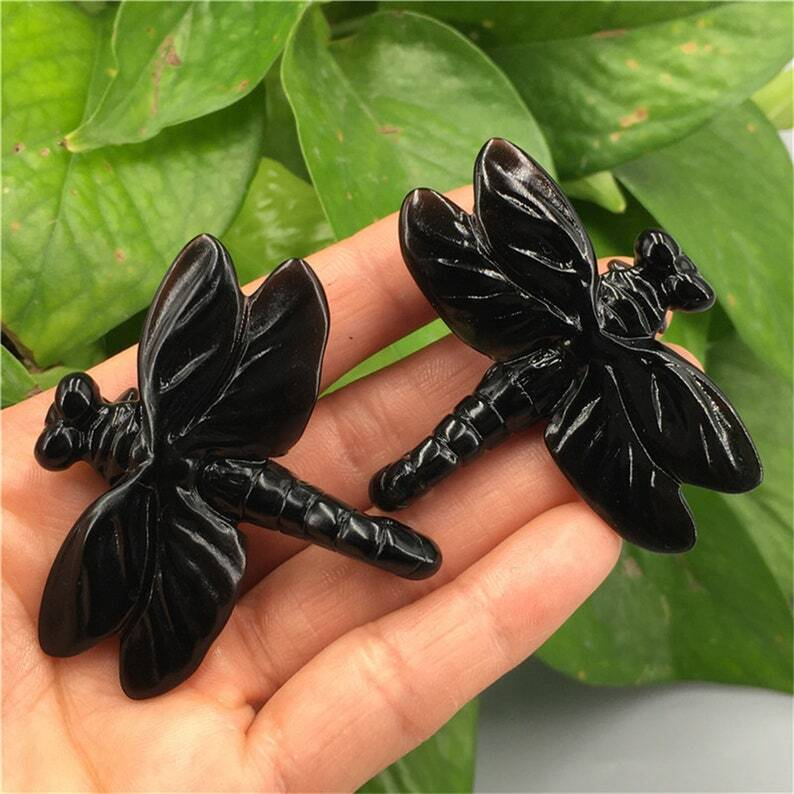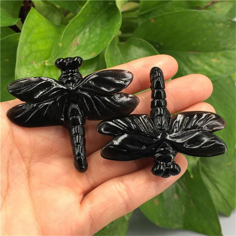 Material:Natural Hand Carved obsidian Quartz Dragonfly