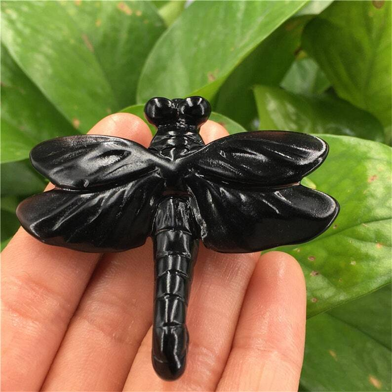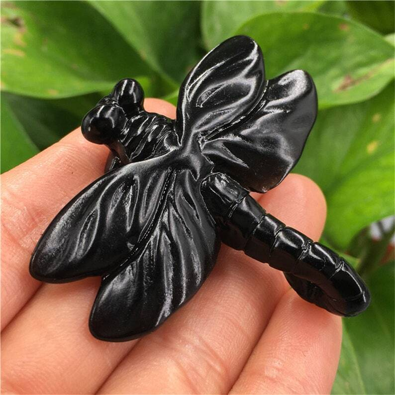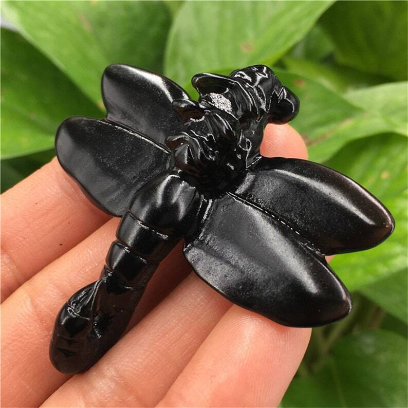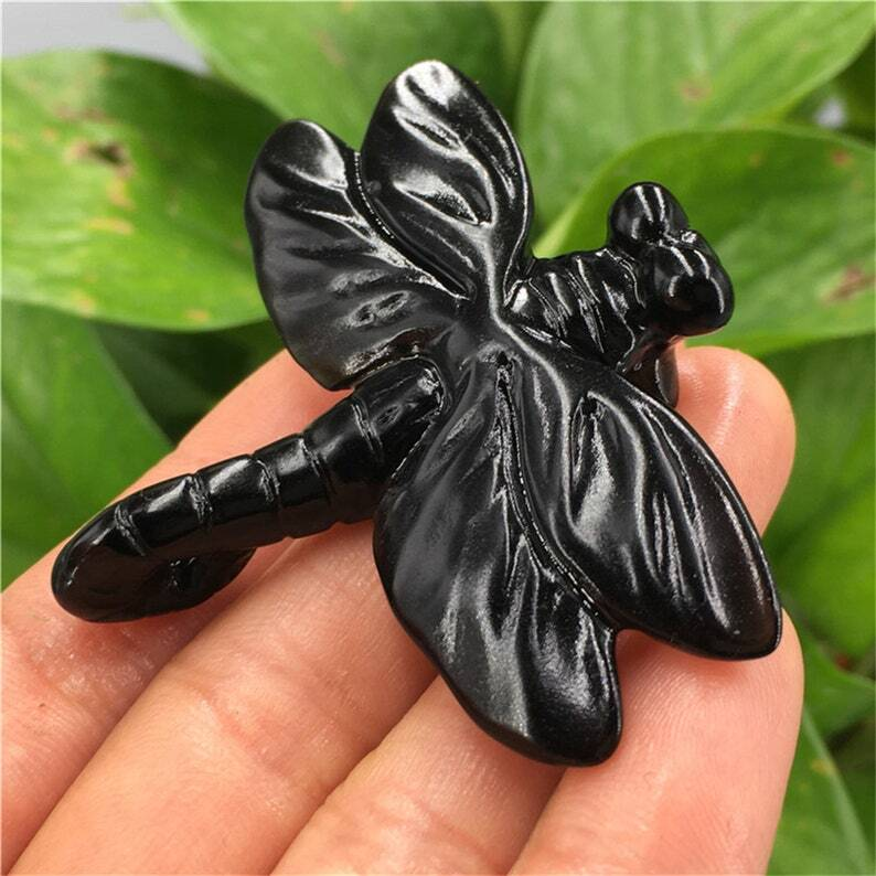 1pc Natural Obsidian Quartz Dragonfly Crystal Hand Carved animal Heal collection