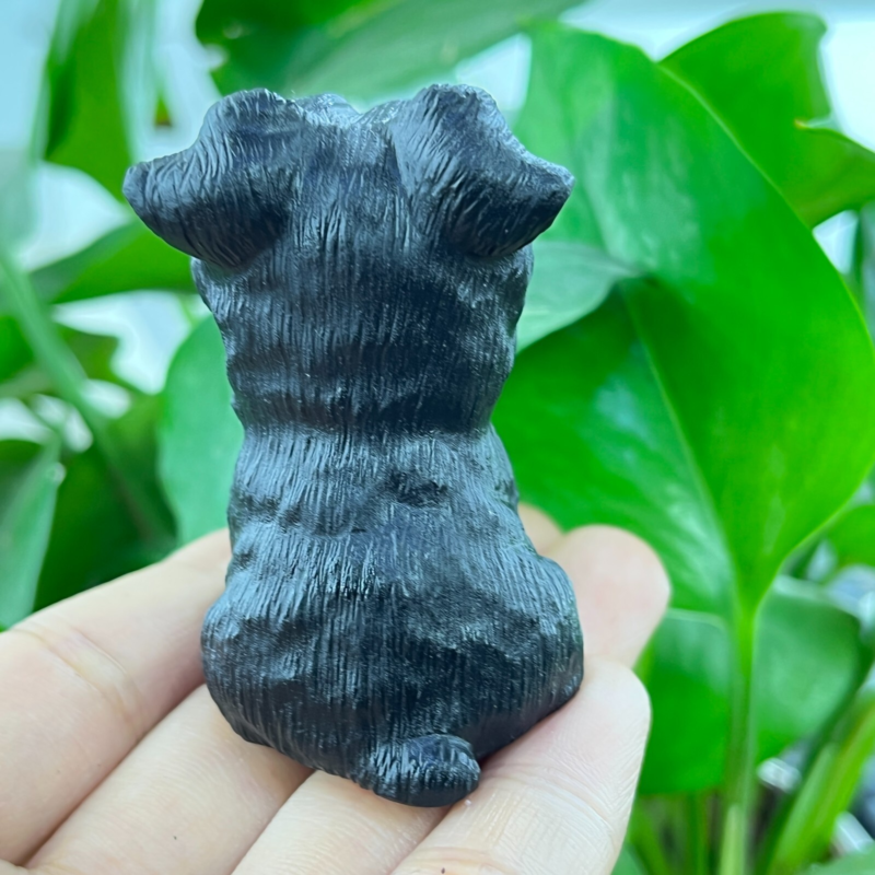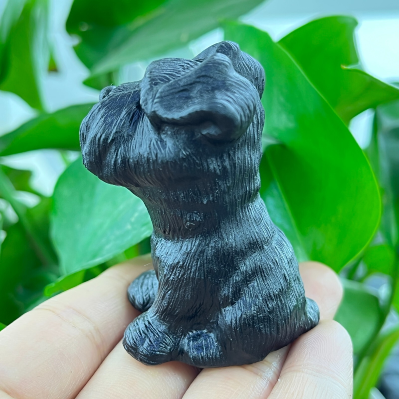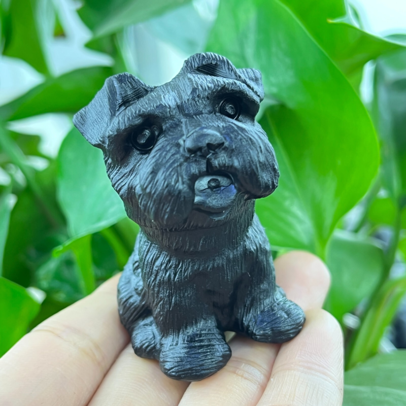 1pc Natural obsidian Schnauzer dog hand carved quartz crystal animal skull 2"