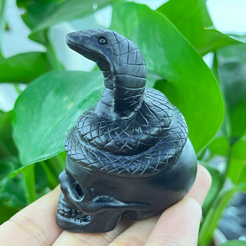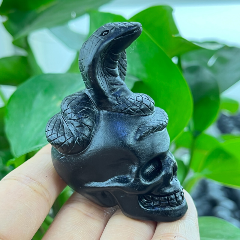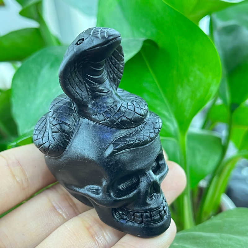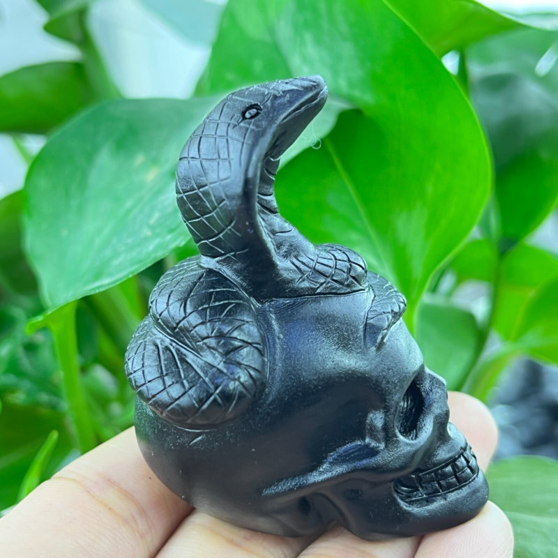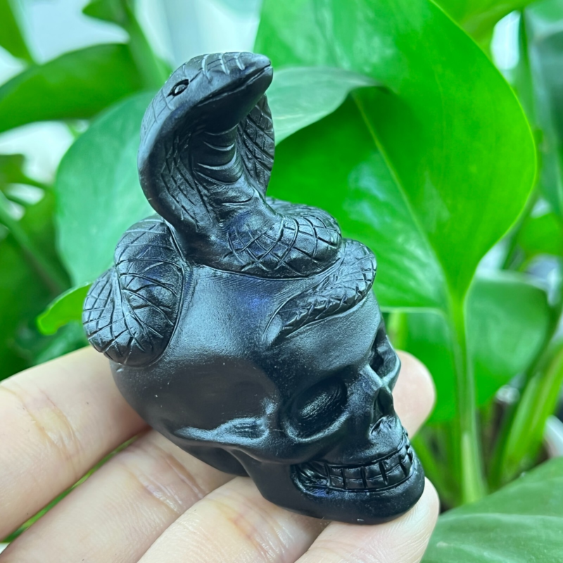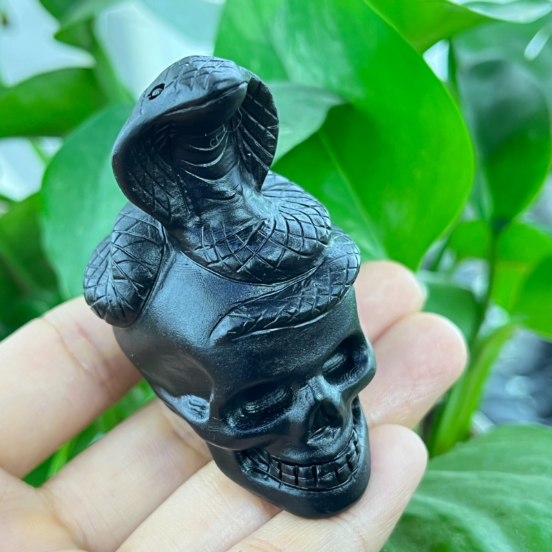 1pc Natural obsidian snake hand carved quartz crystal animal skull Reiki gift 2"