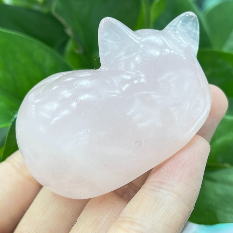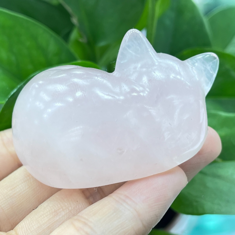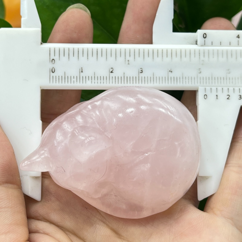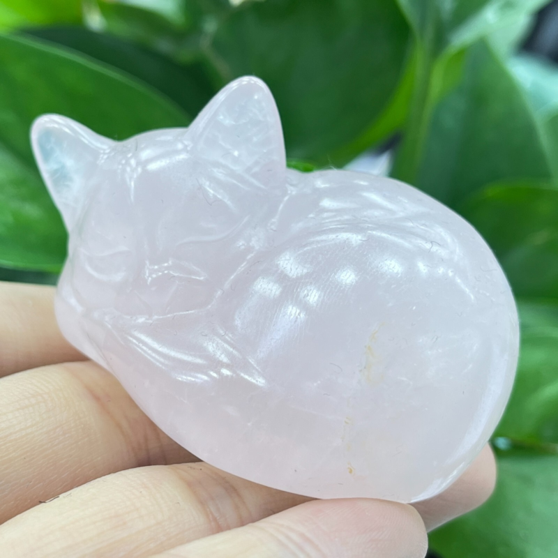 1pc Natural pink rose quartz Sleep cat carved quartz crystal animal skull 2"