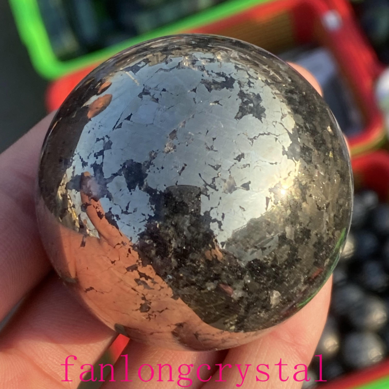 1pc Natural Pyrite Carved sphere quartz crystal Ball Reiki Healing 40mm+