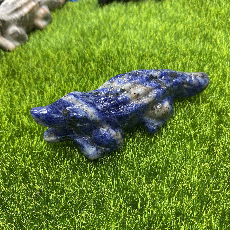 1pc Natural sodalite salamander Quartz hand carved Quartz Crystal stone skull Re