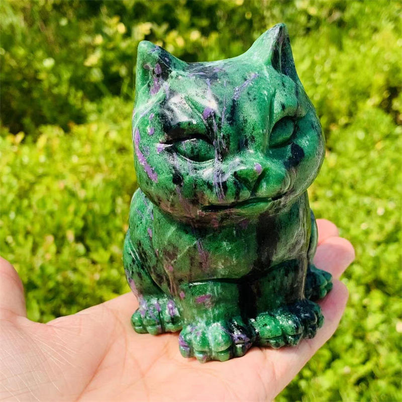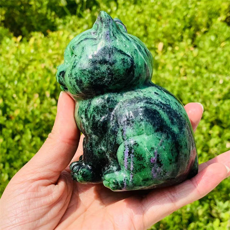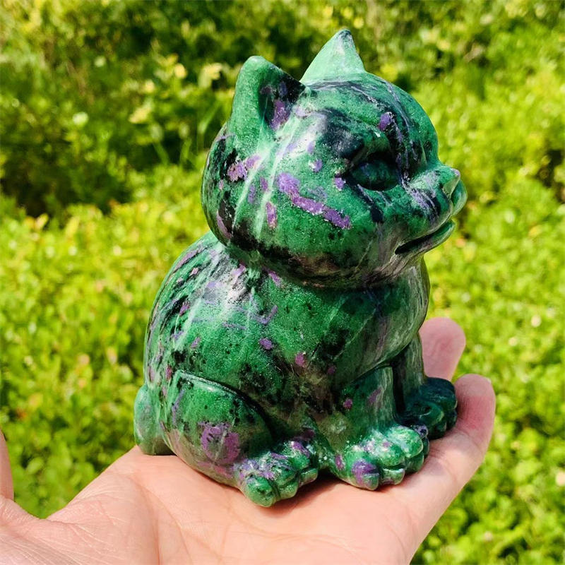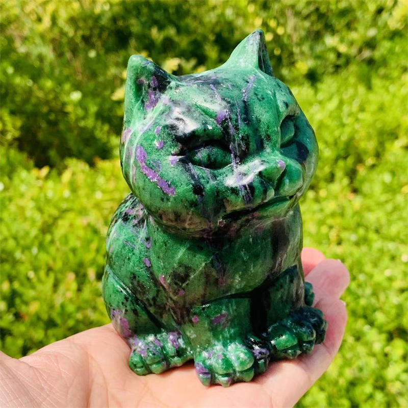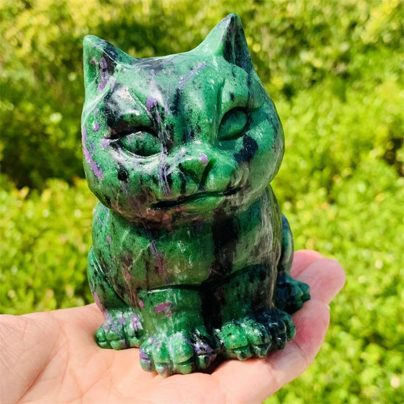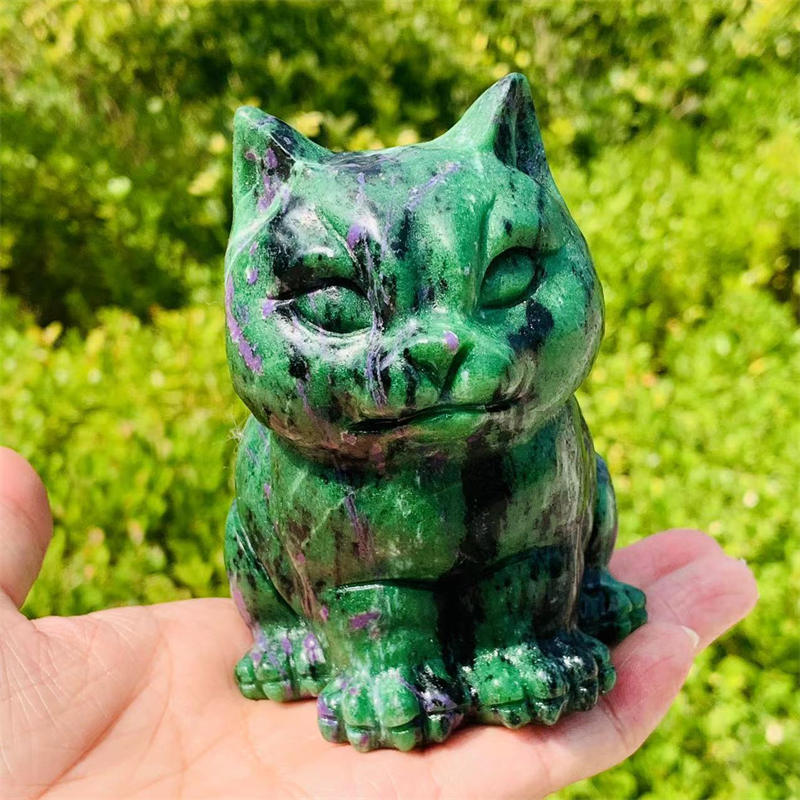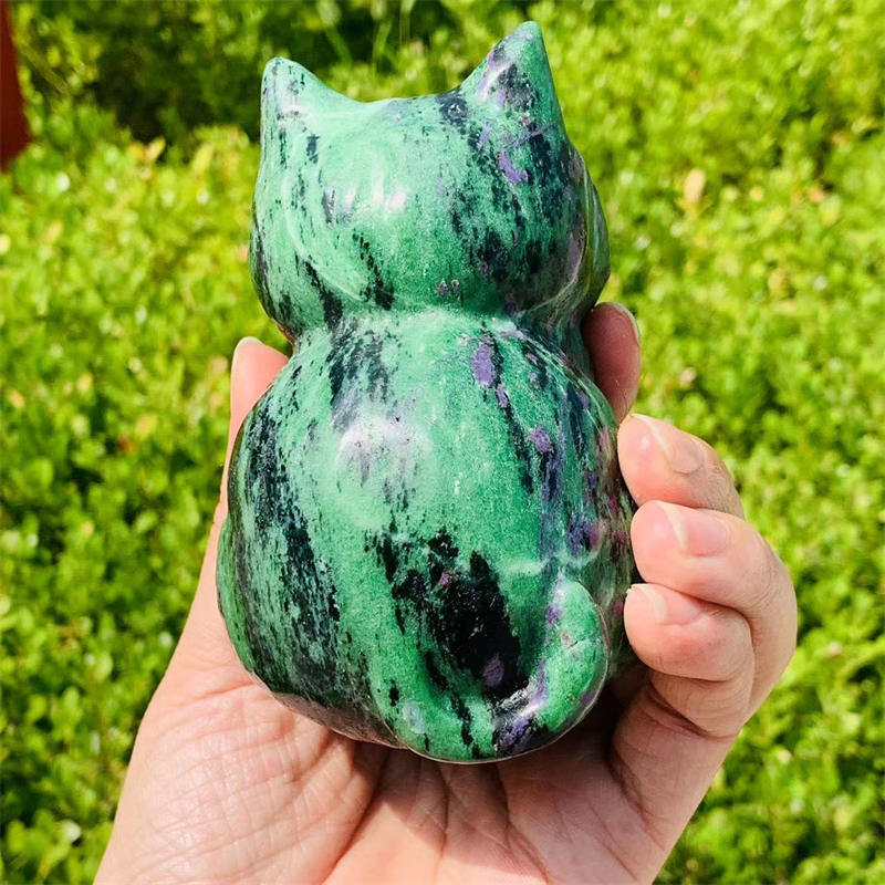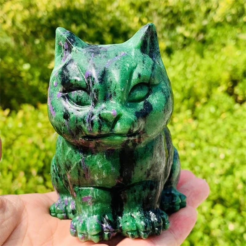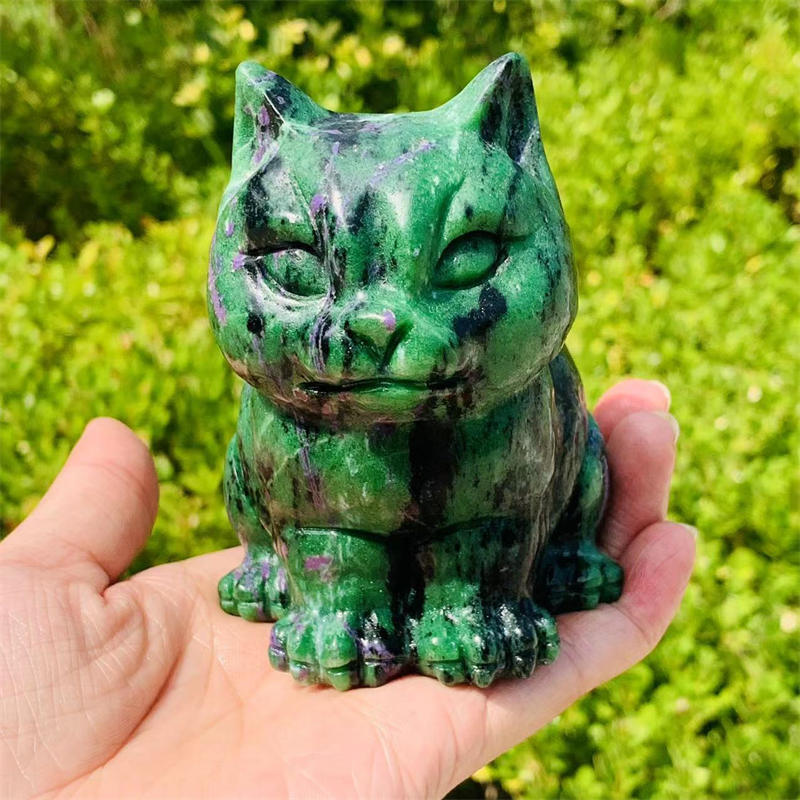 1pc Natural zoisite cat hand carved Quartz Crystal skull Reiki