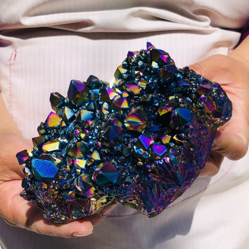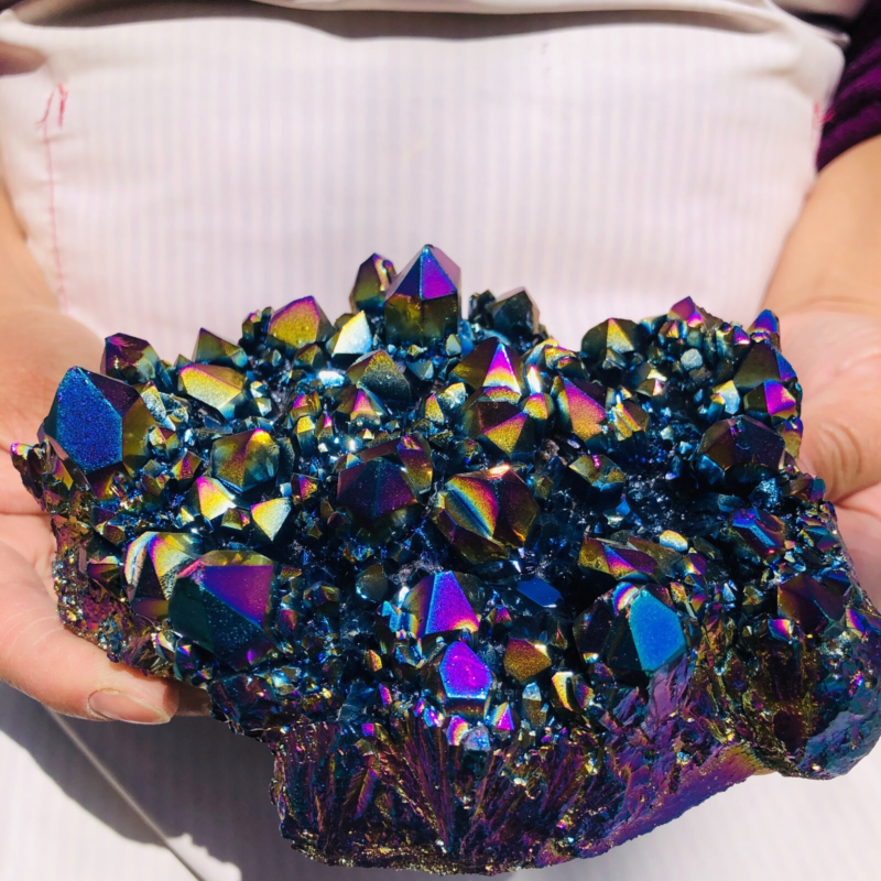 2.31LB Color Flame Aura Electroplate Quartz Crystal Specimen Healing point 477